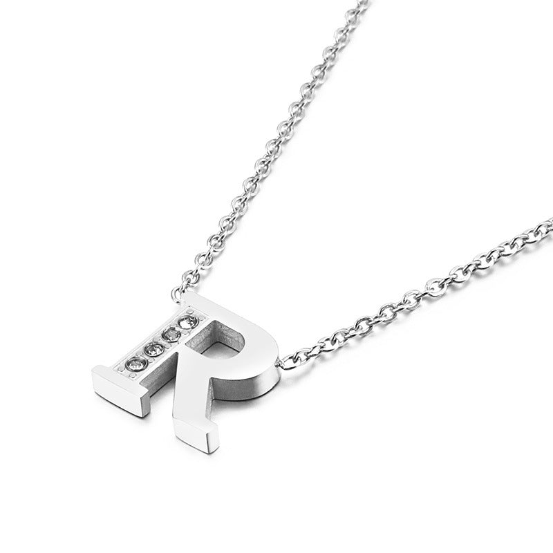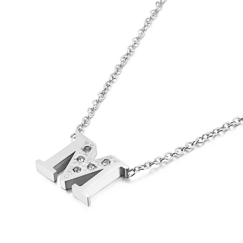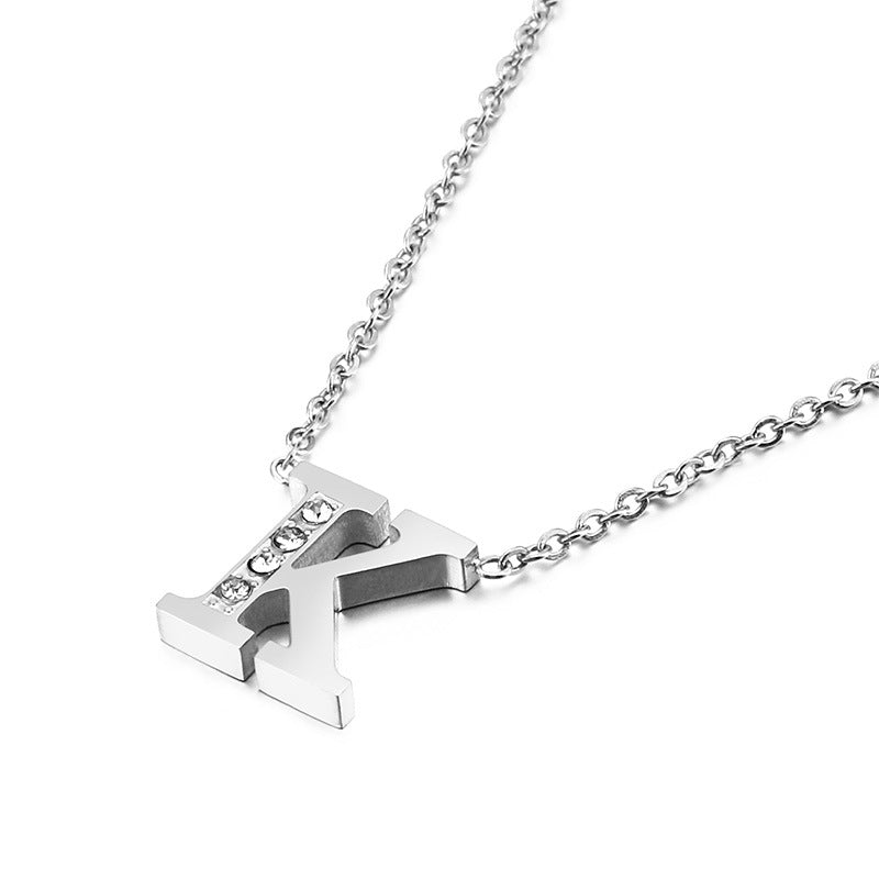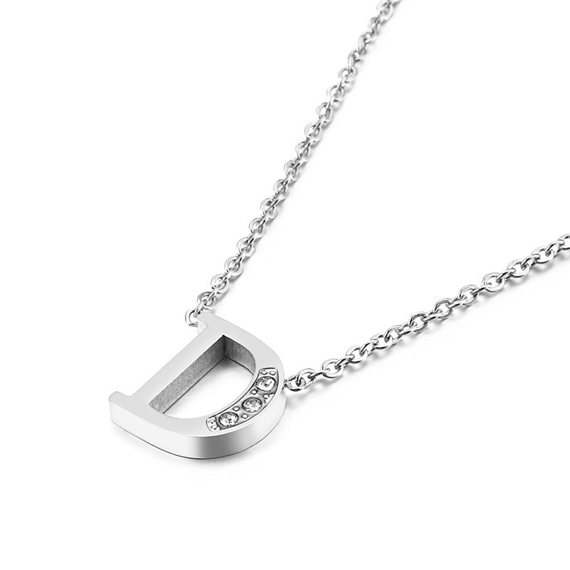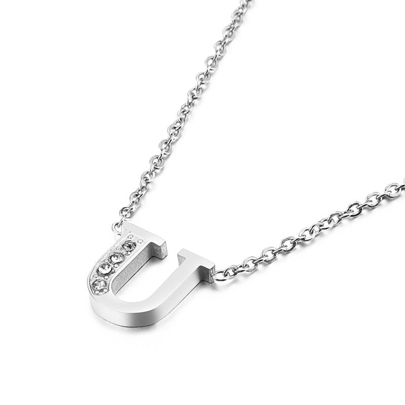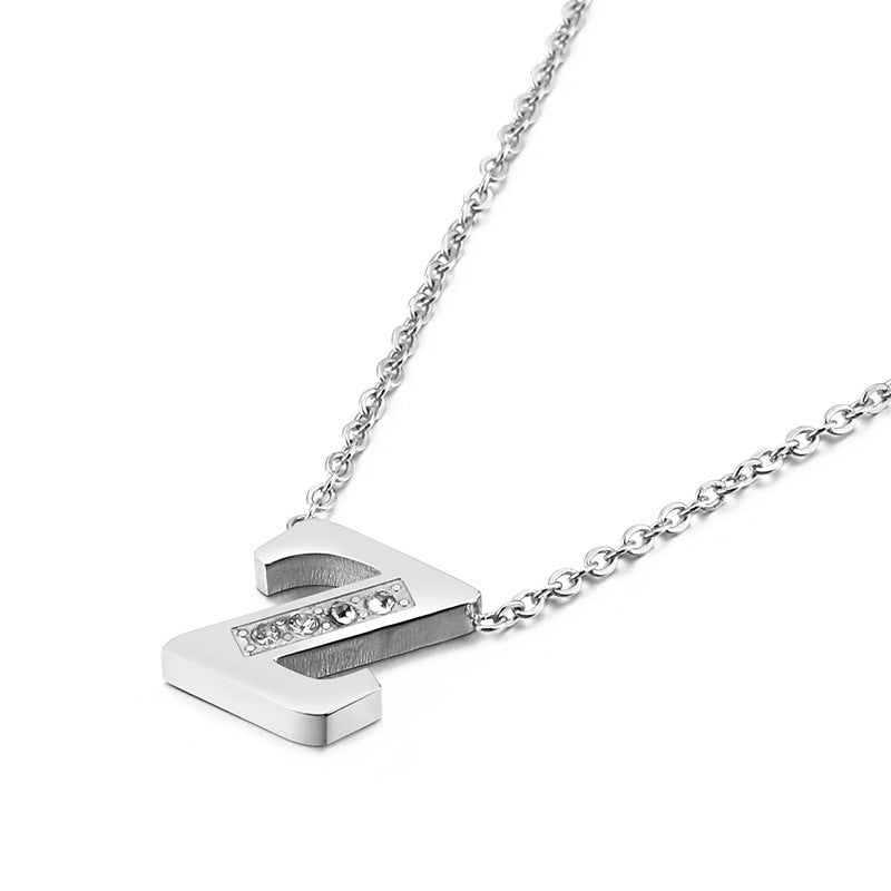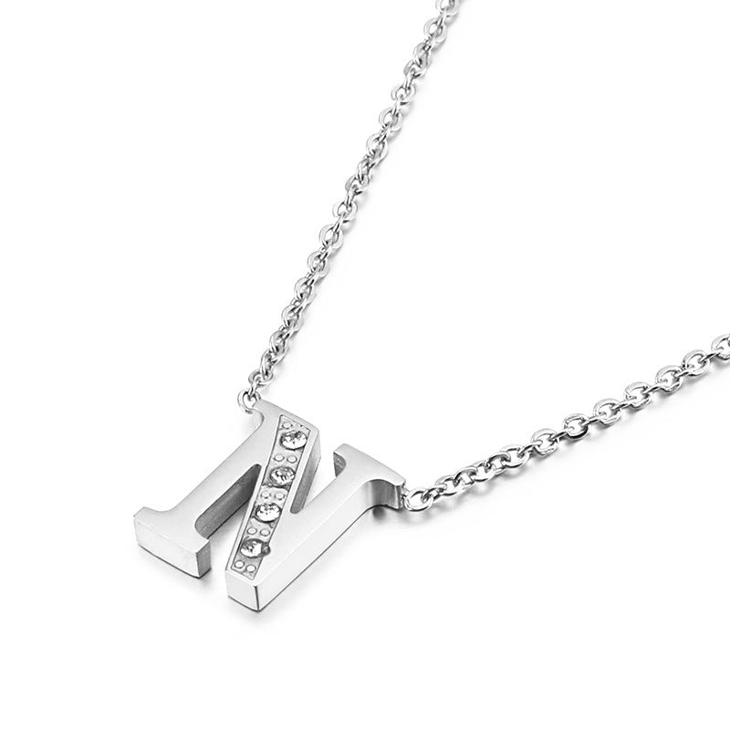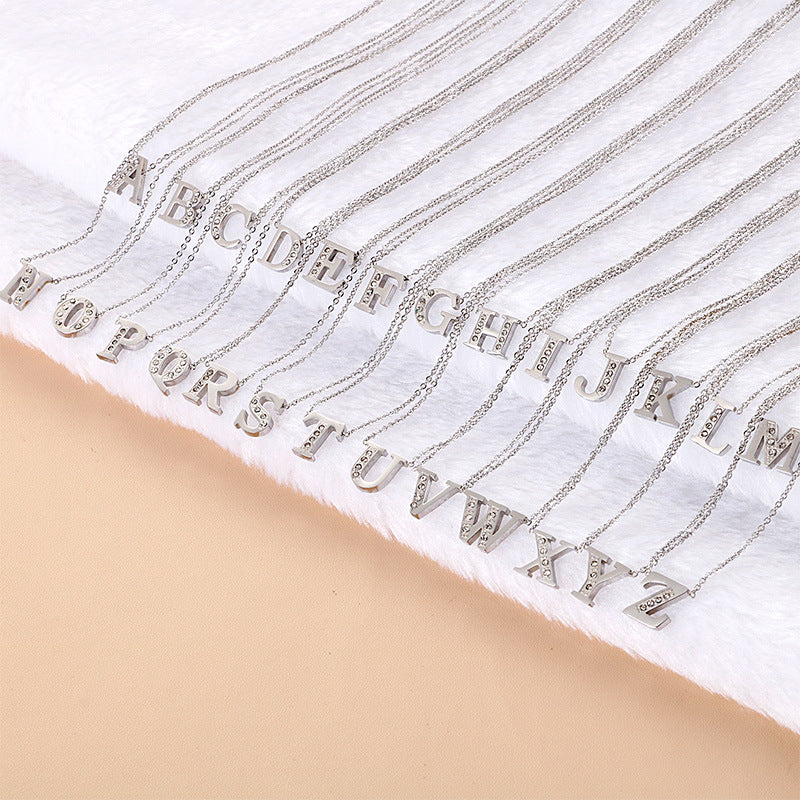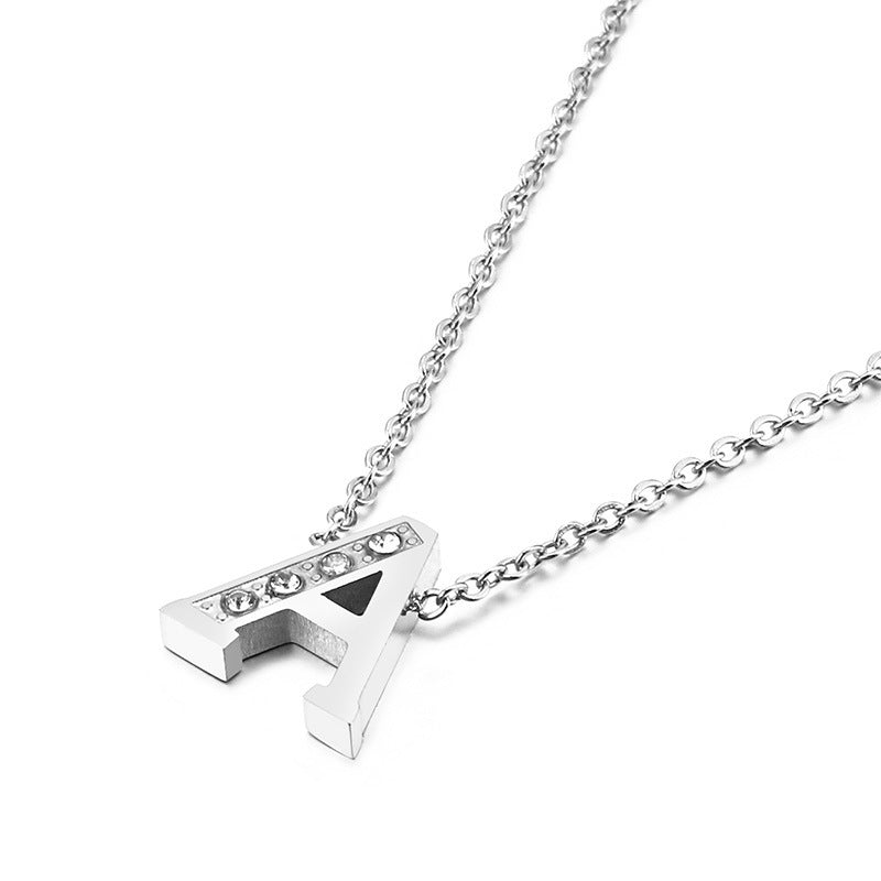 Simple Fashion 26 Inlaid Zircon Uppercase Letter Stainless Steel Necklace