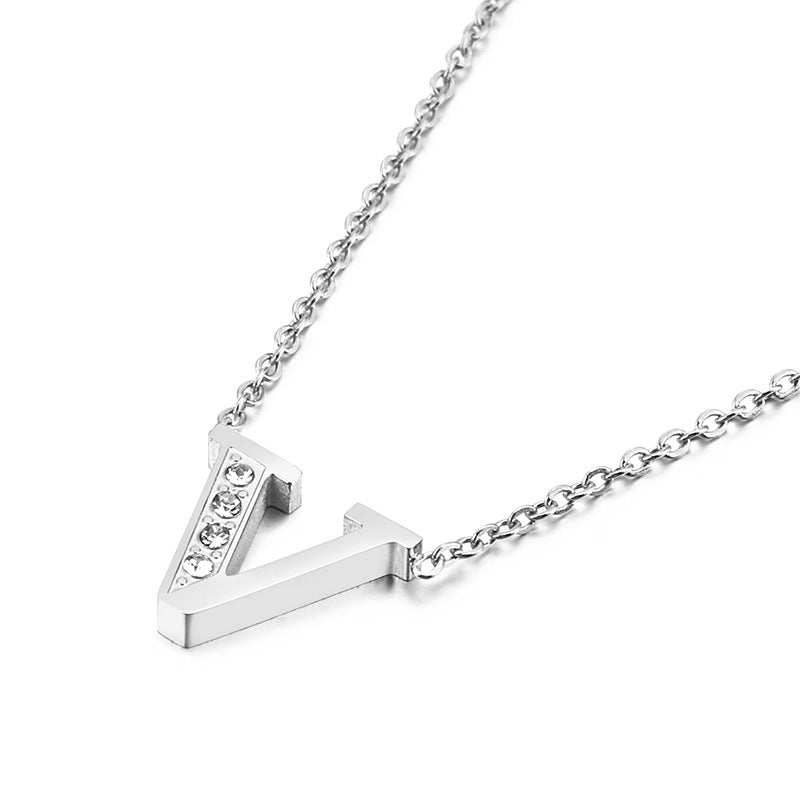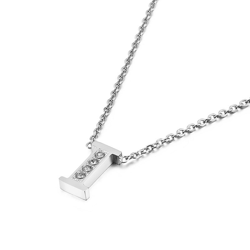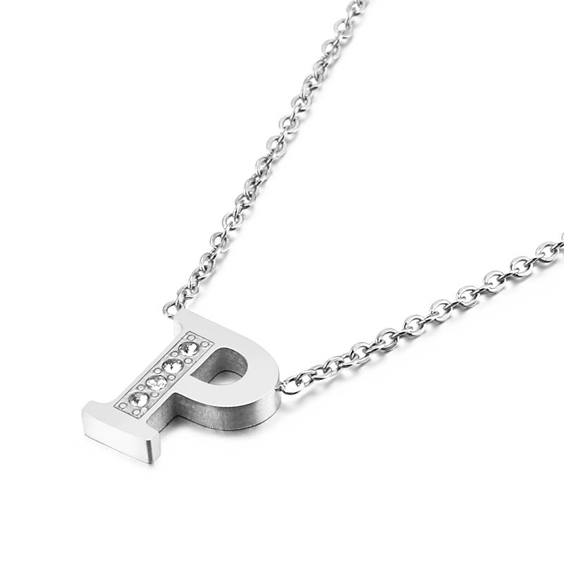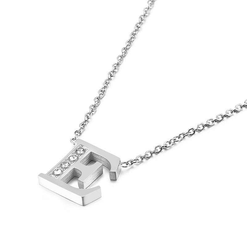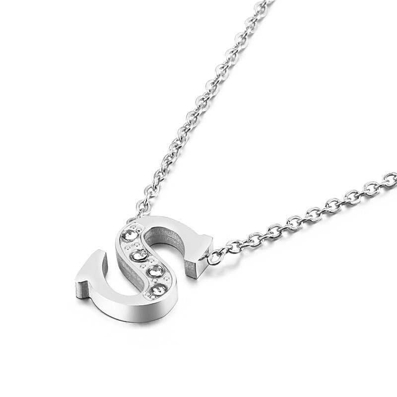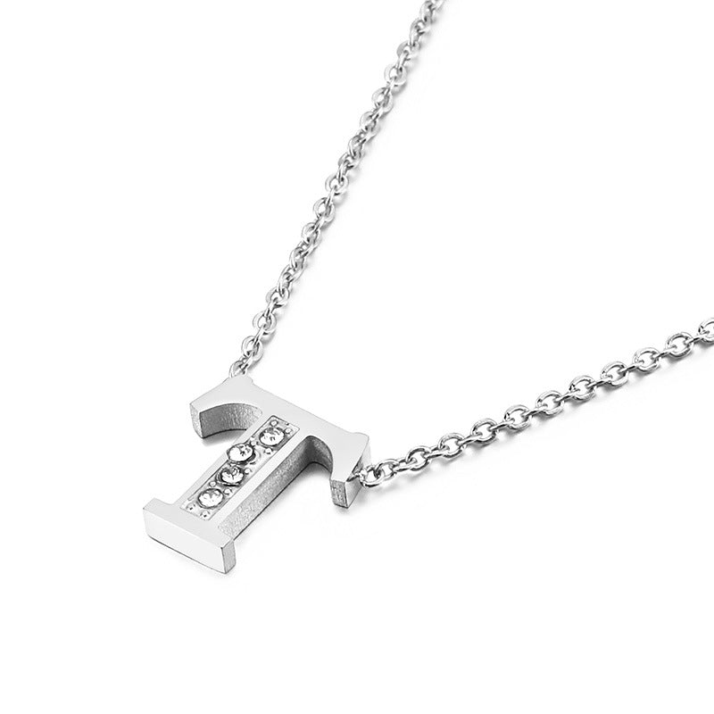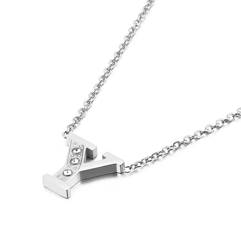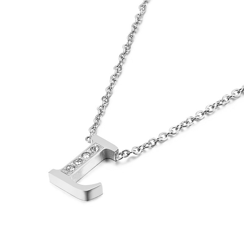 Simple Fashion 26 Inlaid Zircon Uppercase Letter Stainless Steel Necklace