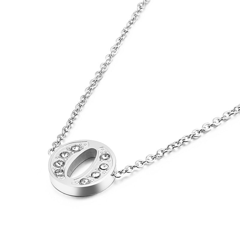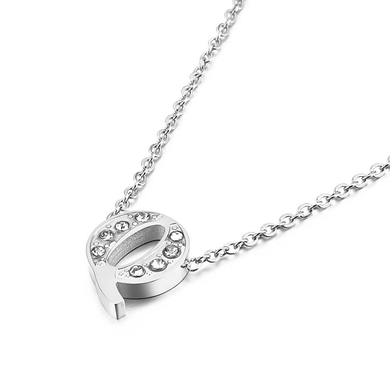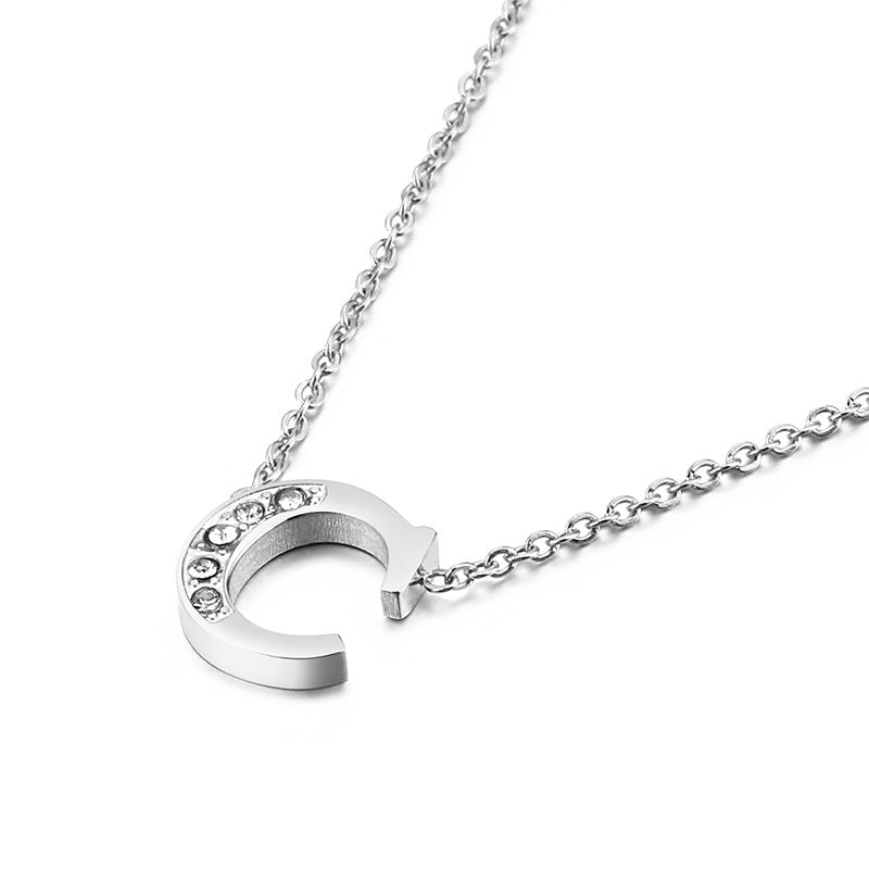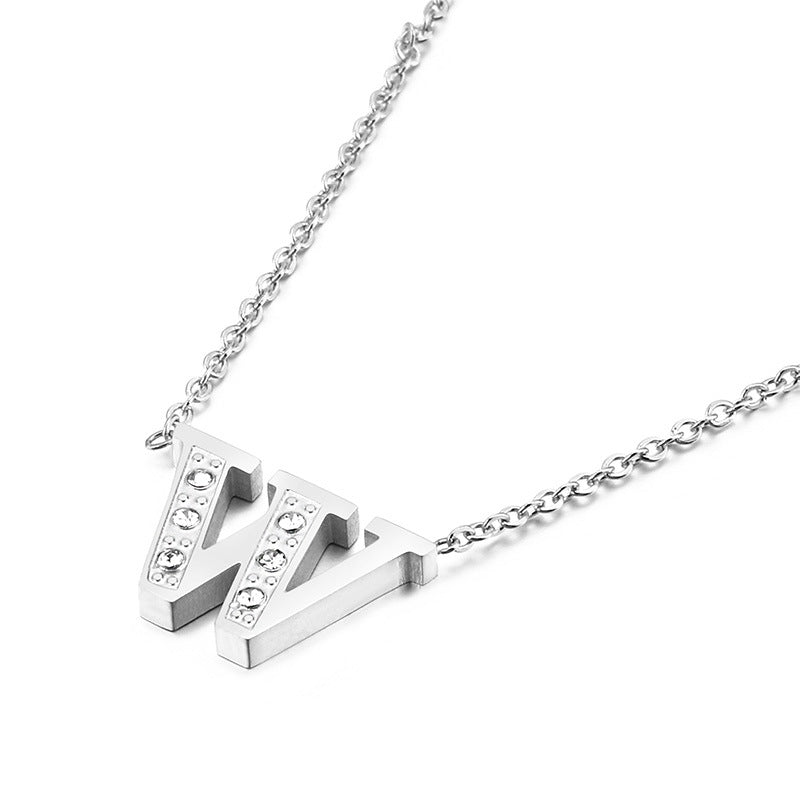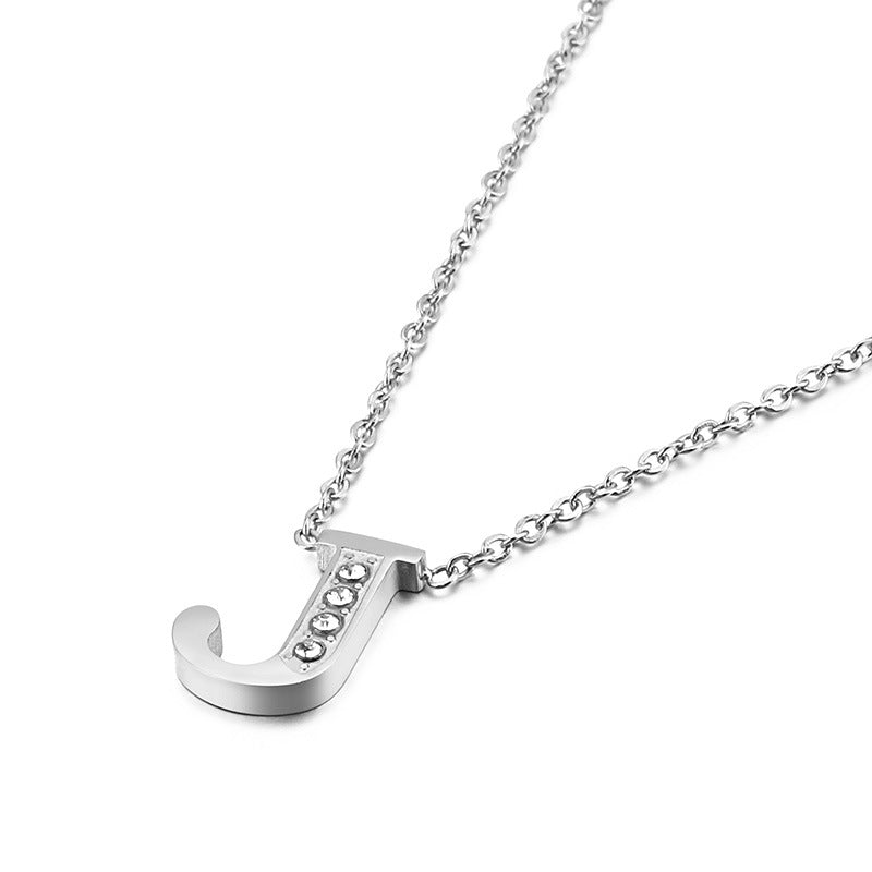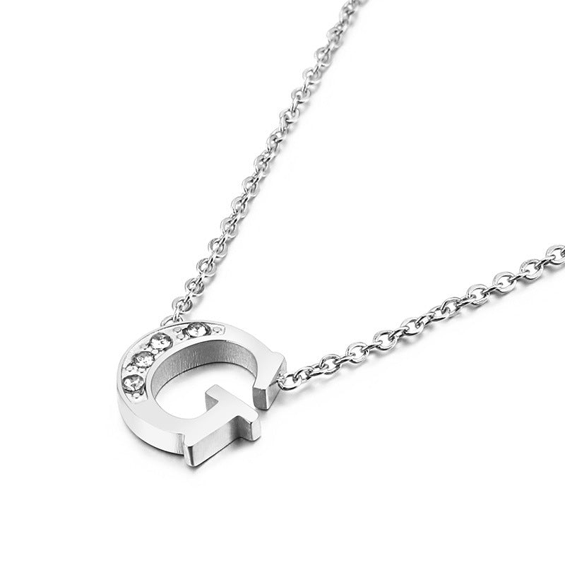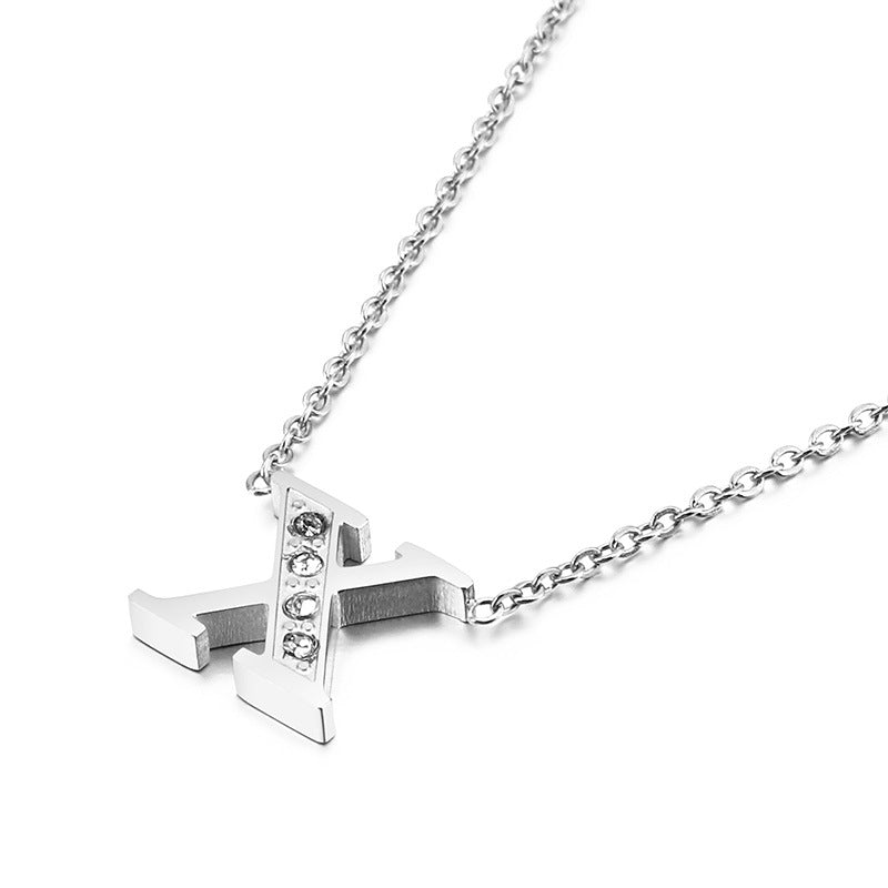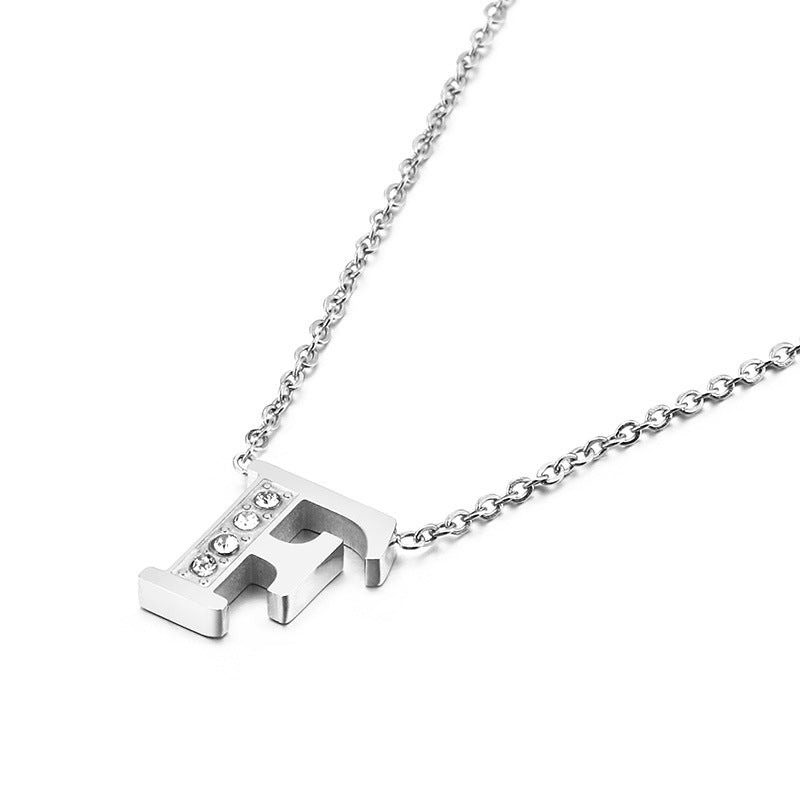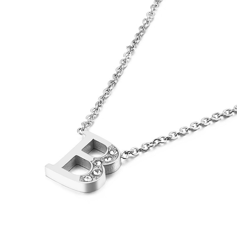 Simple Fashion 26 Inlaid Zircon Uppercase Letter Stainless Steel Necklace