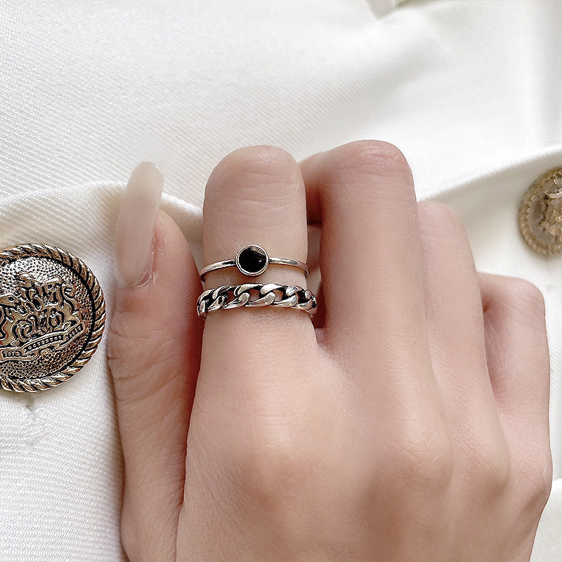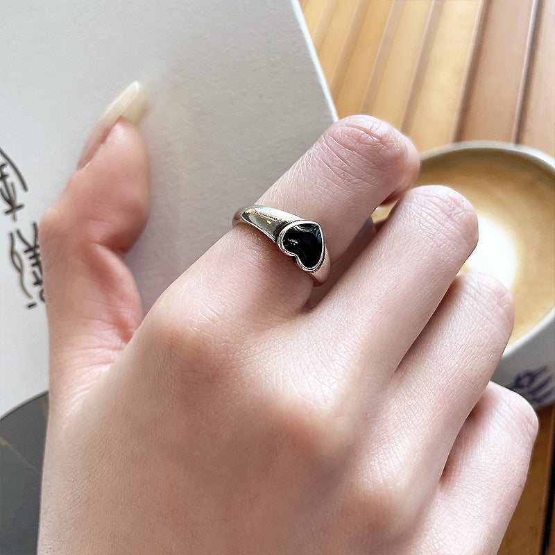 Simple Fashion Red Black Heart Open Adjustable 925 Sterling Silver Ring