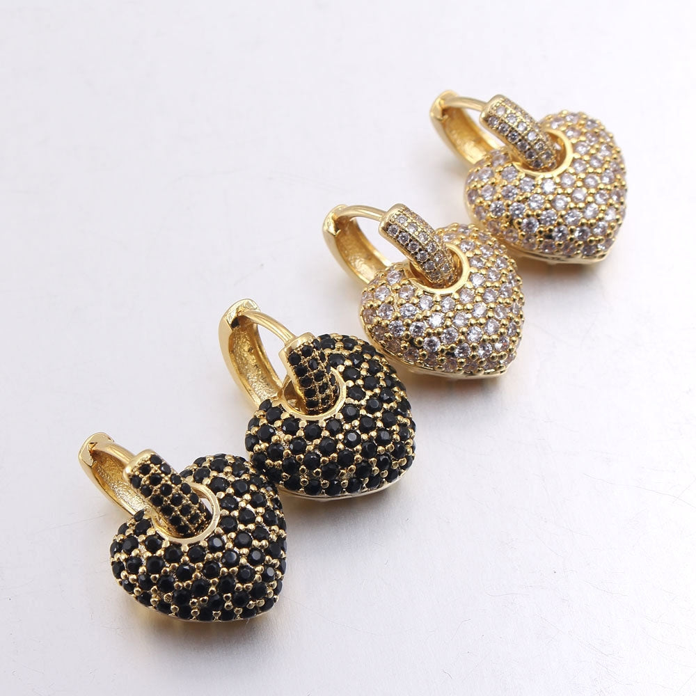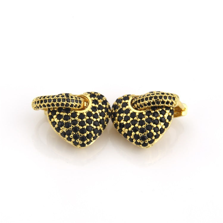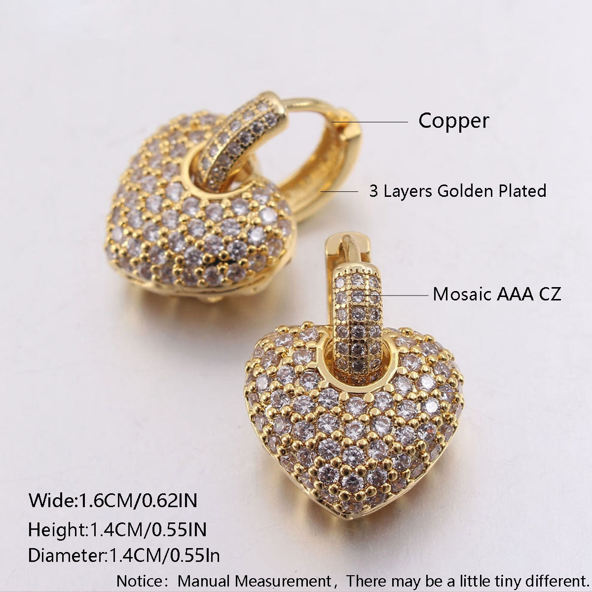 Simple Heart Zircon Gold-Plated Copper Earrings