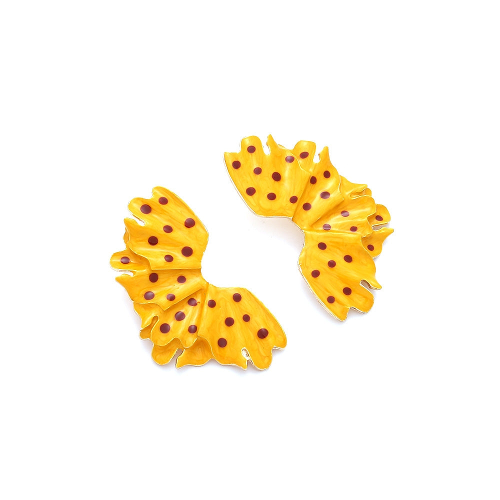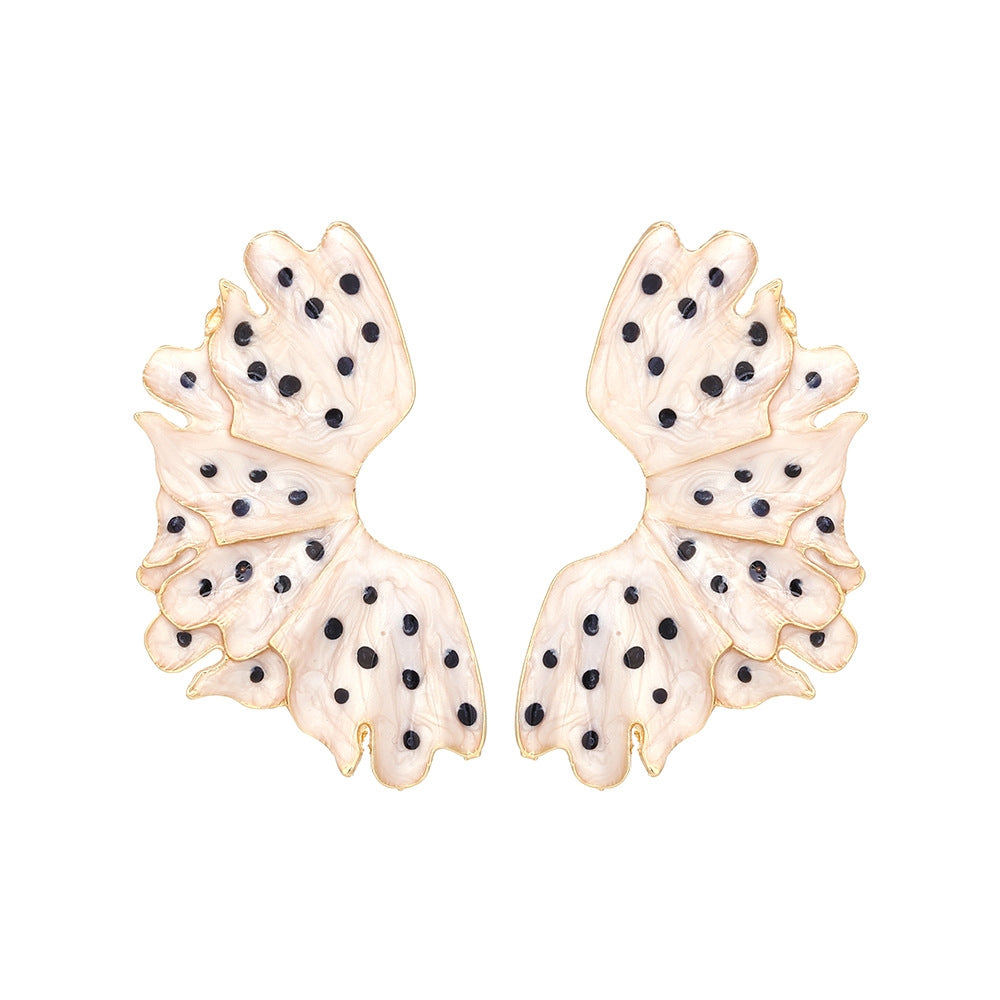 Simple Leaf Enamel Polka Dot Stud Earrings for Women