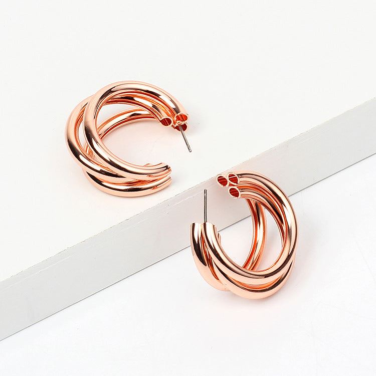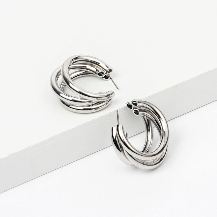 Simple Metal Texture Multi-Layer Semicircle Earrings for Women