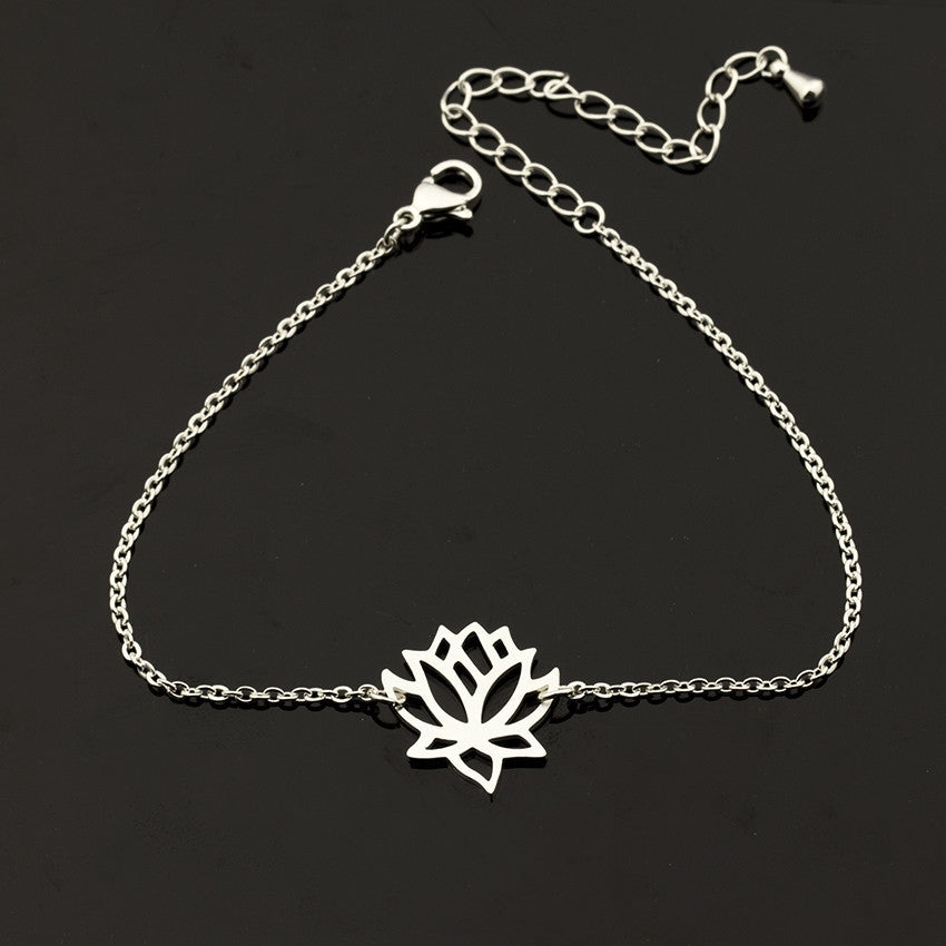 Simple Rose Gold Stainless Steel Lotus Bracelet Gift for Women