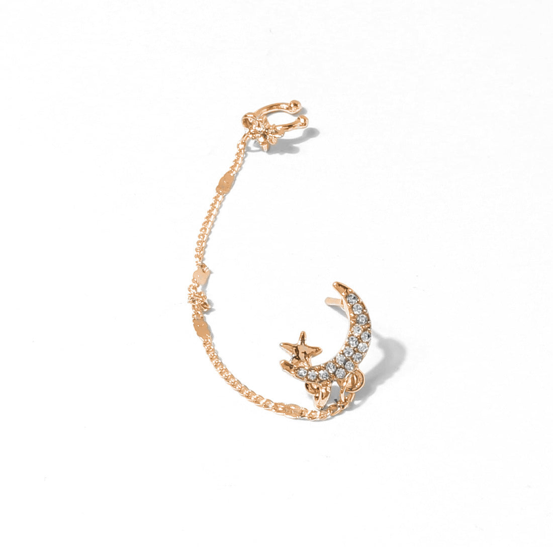 Simple Style Moon and Star Rhinestone Inlay Pearl Women's Ear Clips Set
