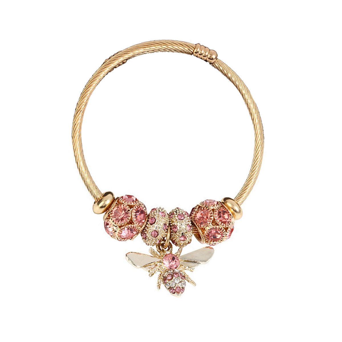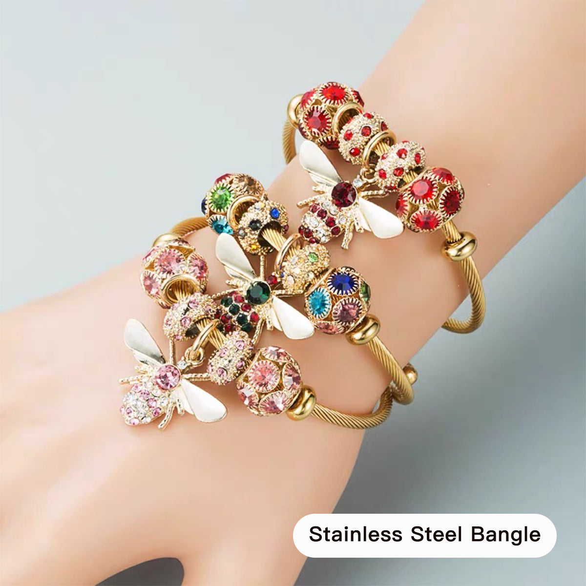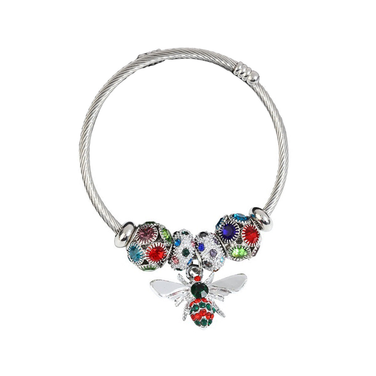 Colorful Bee Zircon Alloy Stainless Steel Bangle Bracelet