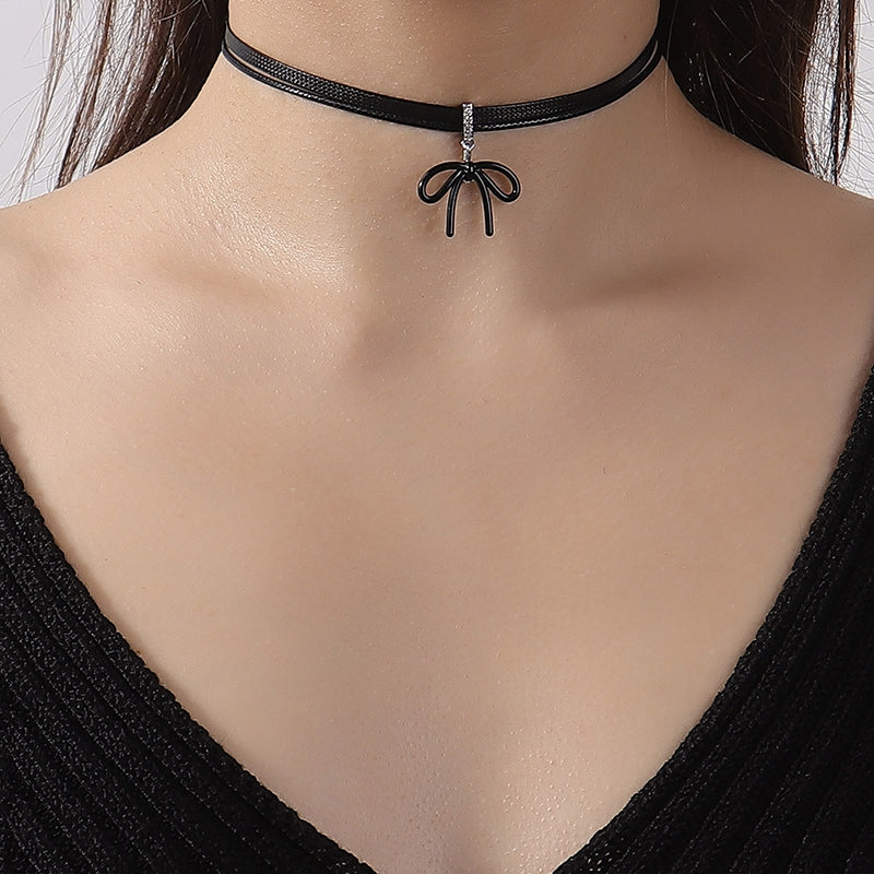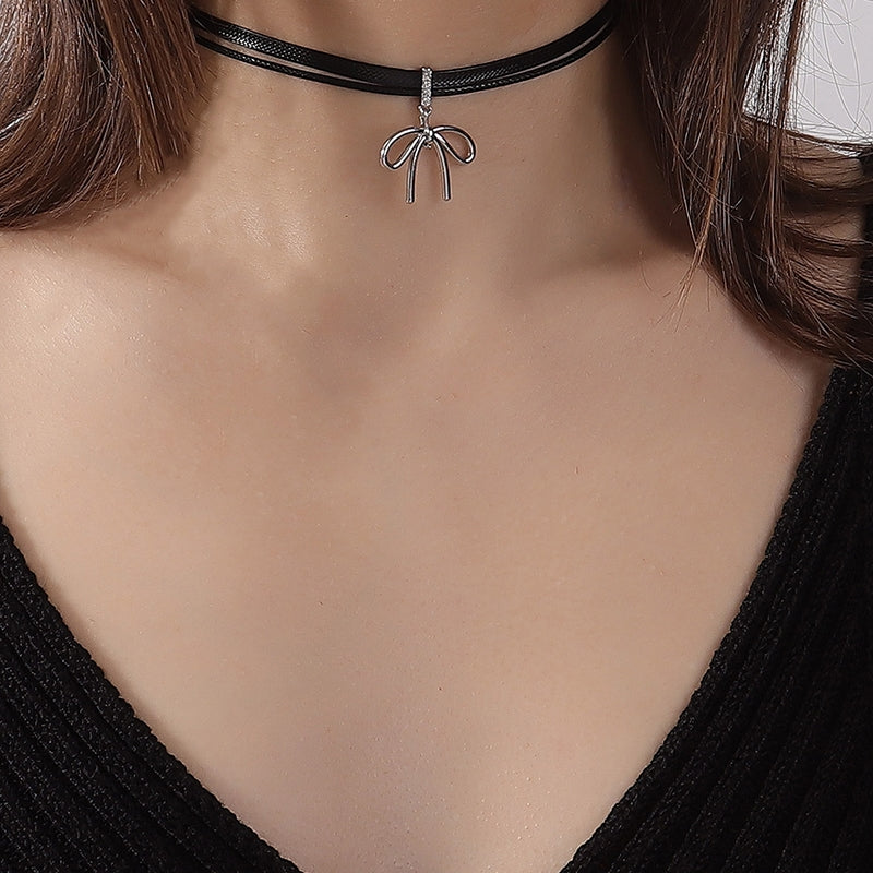 Simple Style Rhinestone Bowknot Pendant Double Layer Women's Choker Necklace
