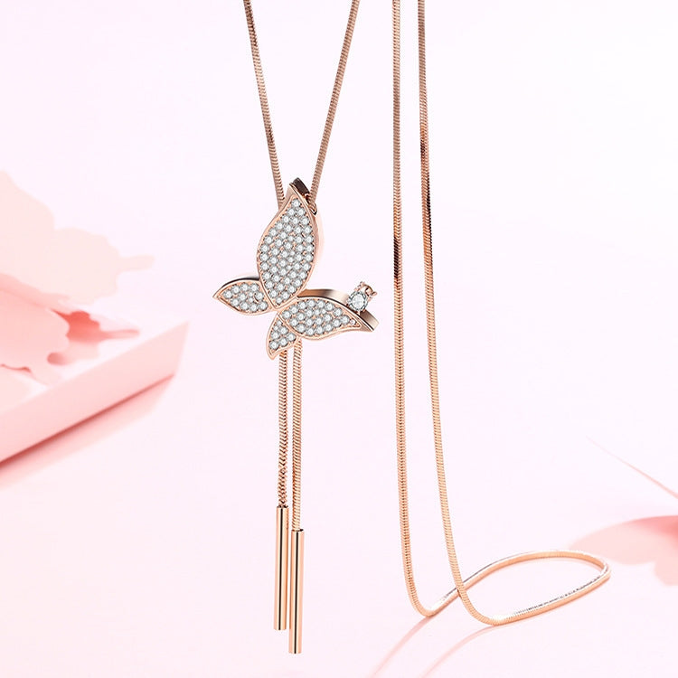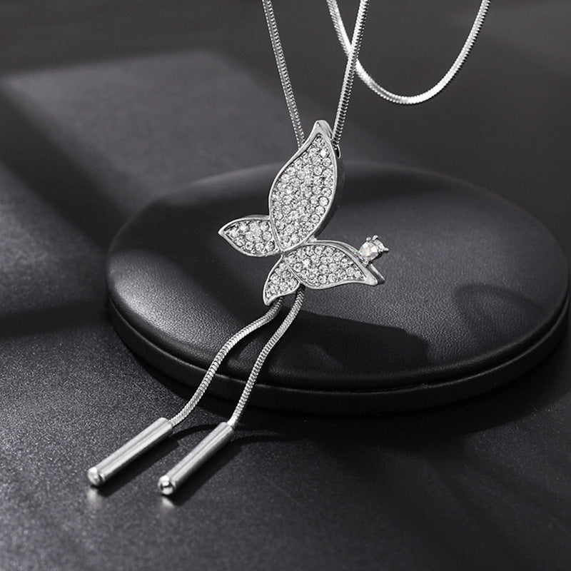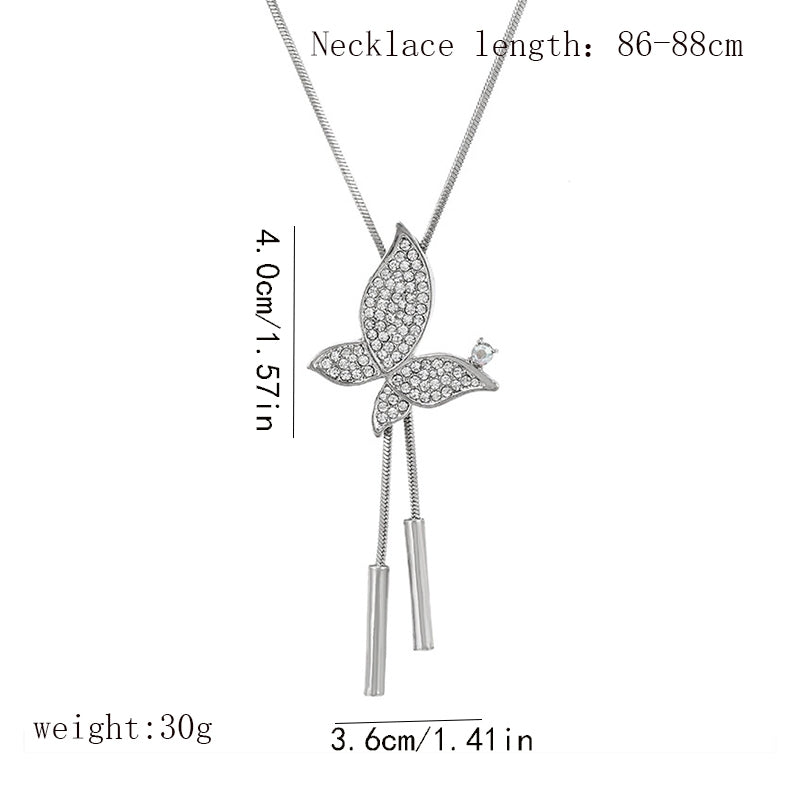 Elegant Crystal Butterfly Pendant Long Necklace for Women