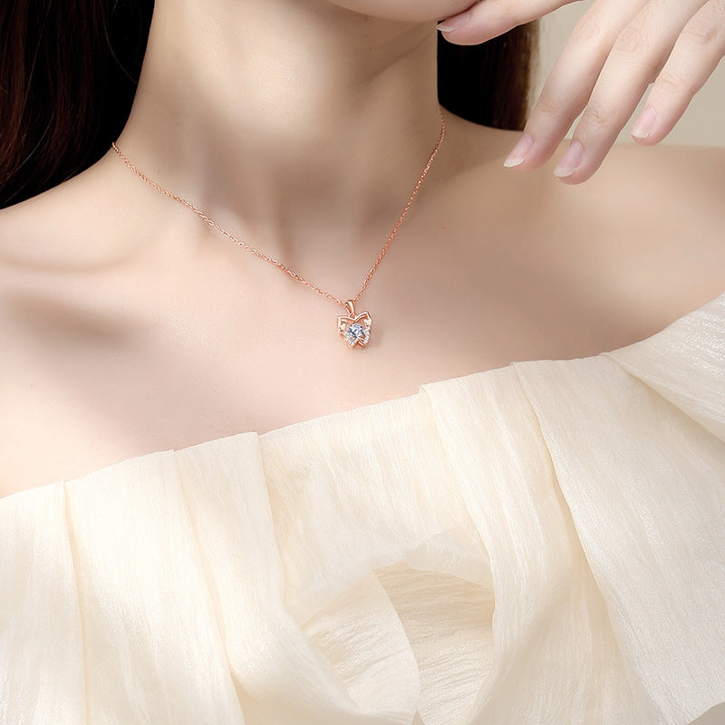 Simple Style Sterling Silver Butterfly Moissanite Zircon Pendant Necklace
