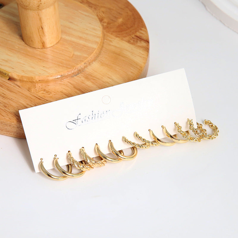 Simple Geometric Gold Plated Pearl Inlay Circle Earrings for Women