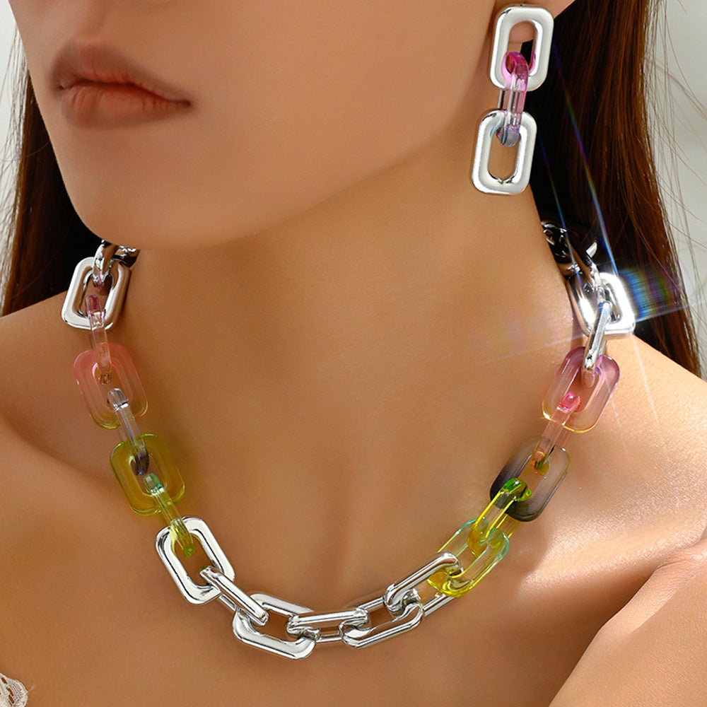 Simple Style Color Block Acrylic Plated Women's Jewelry Set - Necklace and Earrings Trio
