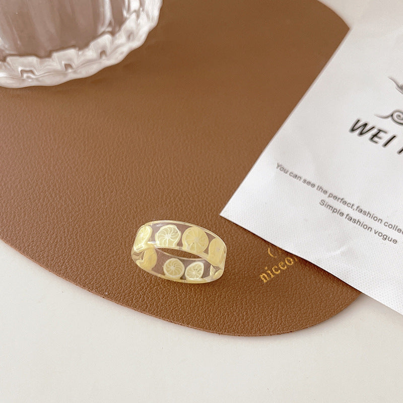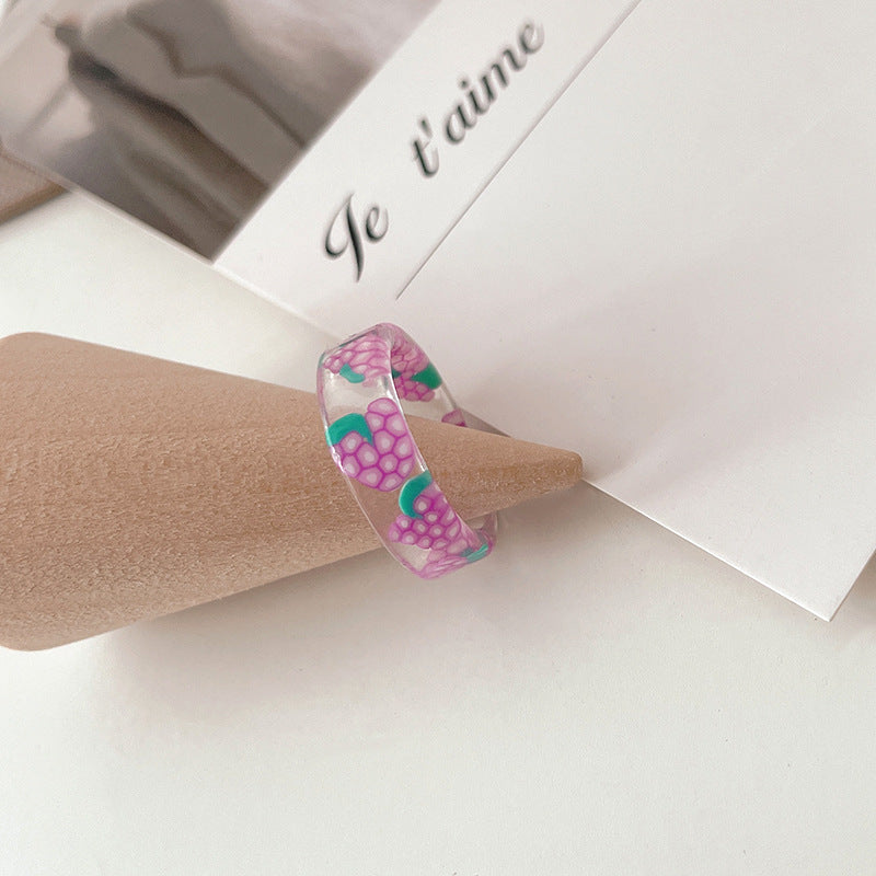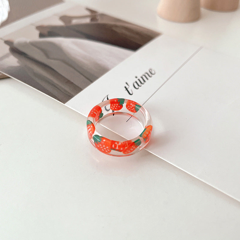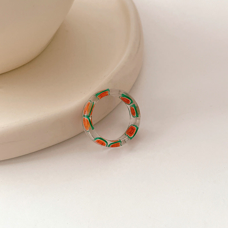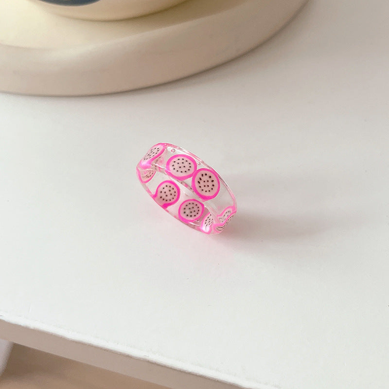 Acrylic Fruit Print Resin Rings for Women - Candy Color Heart Design