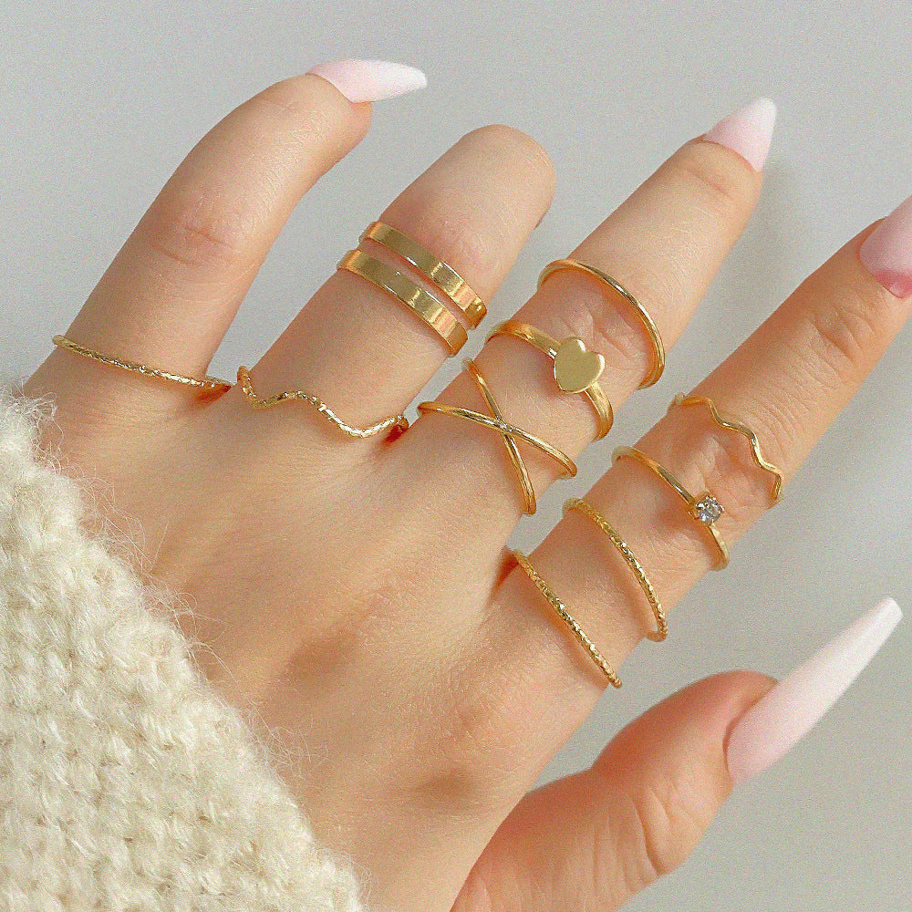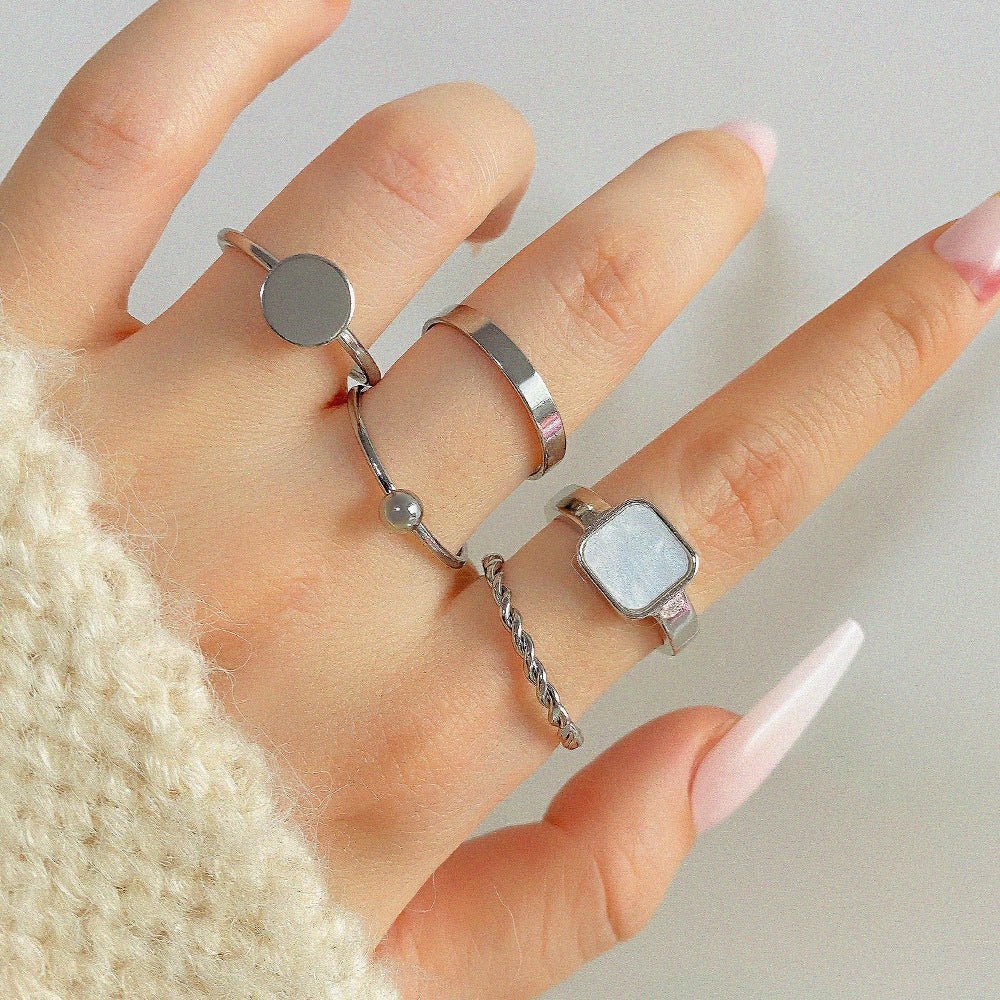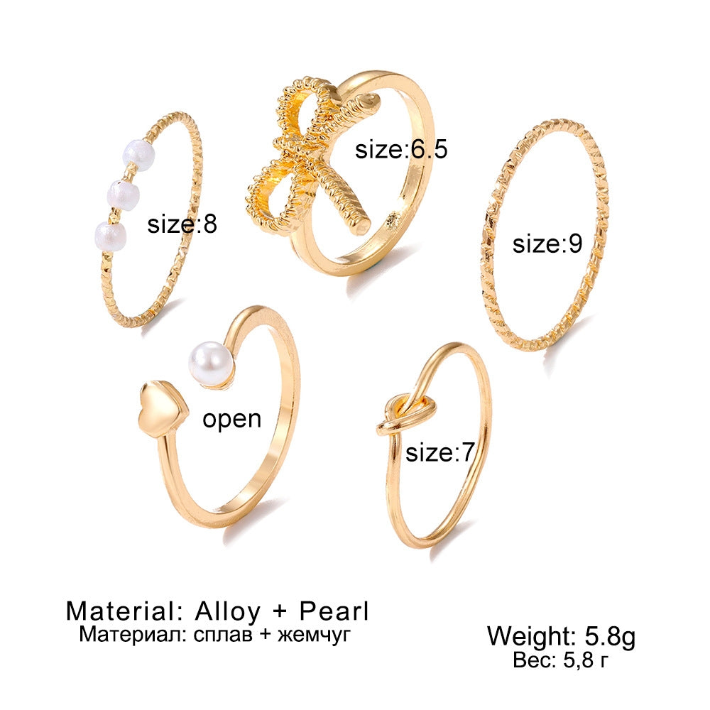 Elegant Heart Bow Knot & Pearl Geometric Ring Set for Women