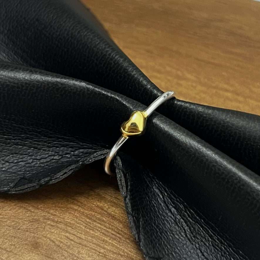 Minimalist Geometric Heart Sterling Silver Adjustable Ring
