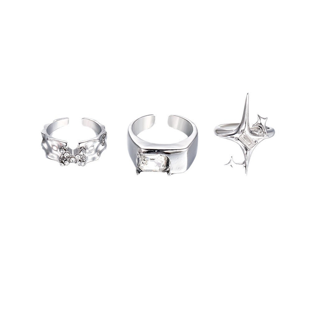 Minimalist Zircon Inlay Starburst Ring Set for Women and Men