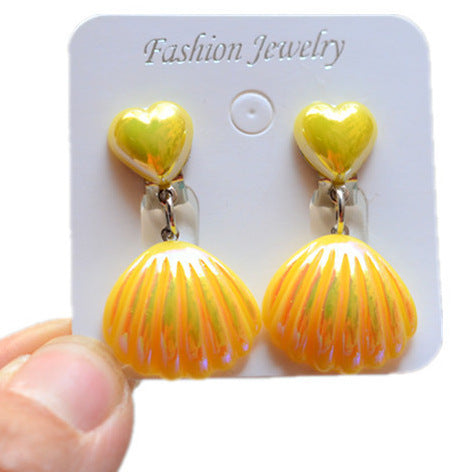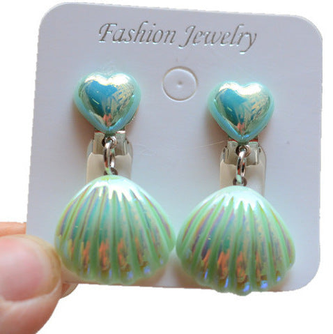 Simple Shell Resin Heart Ear Cuffs for Girls