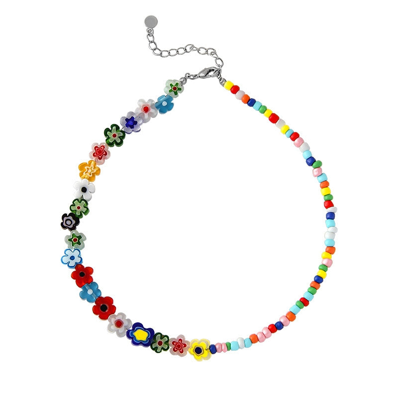 Simple Style Colorful Flower Acrylic Beaded Women's Necklace