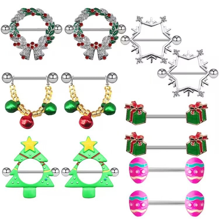 Simple Style Sunflower Snowflake Rhinestone Inlay Stainless Steel Nipple Ring