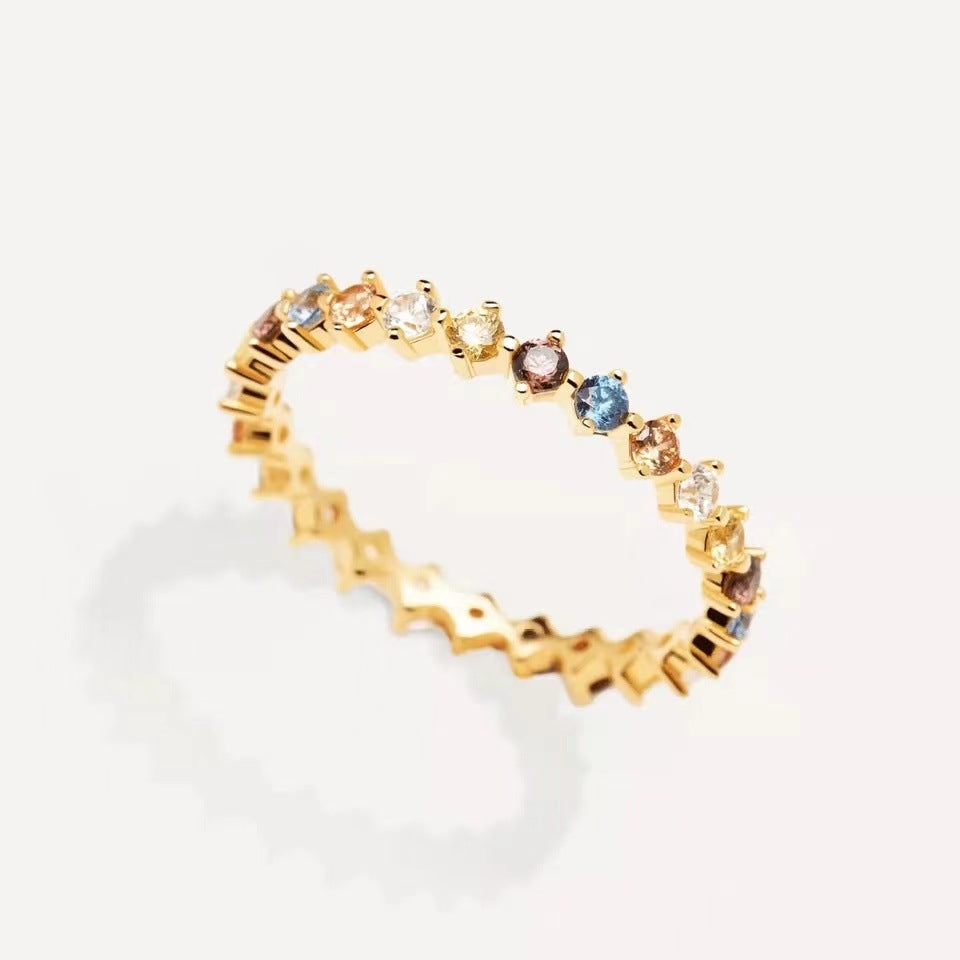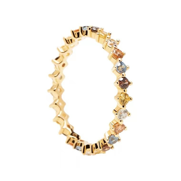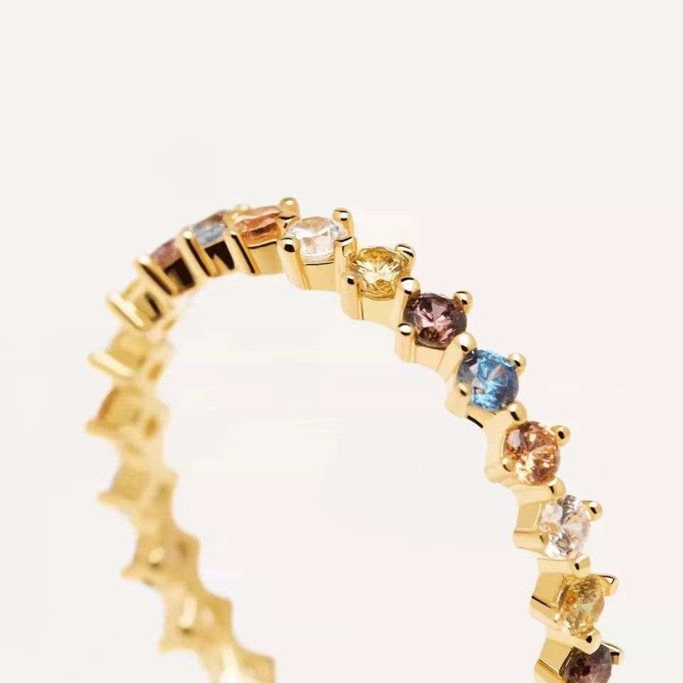 Colorful Zircon Inlay 18k Gold Plated S925 Silver Rings - Unique Design