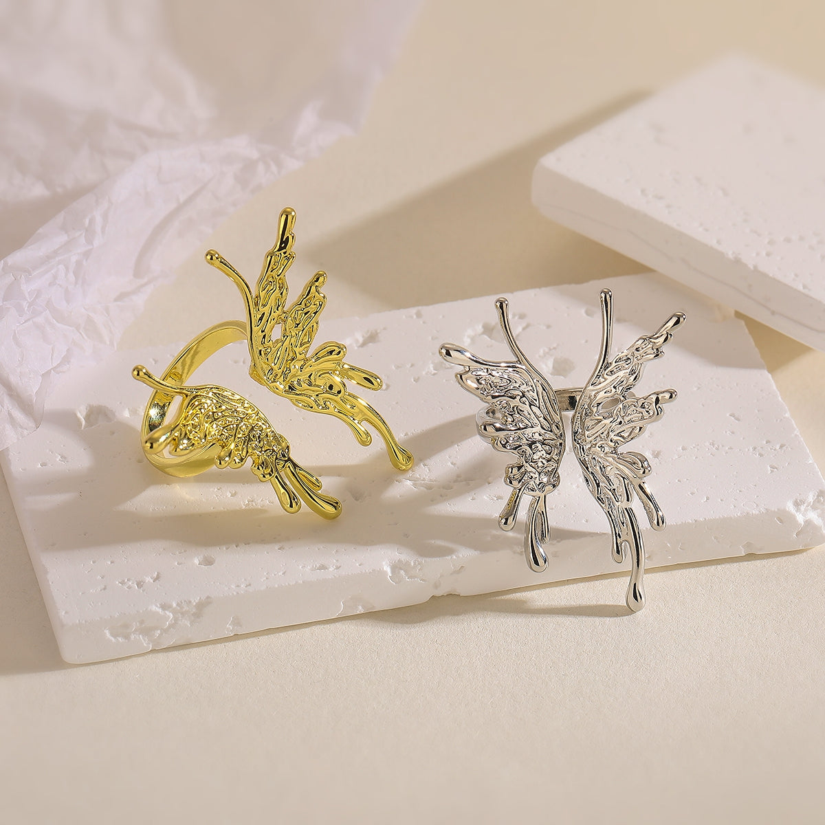 Minimalist Butterfly 18k Gold Plated Copper Open Ring