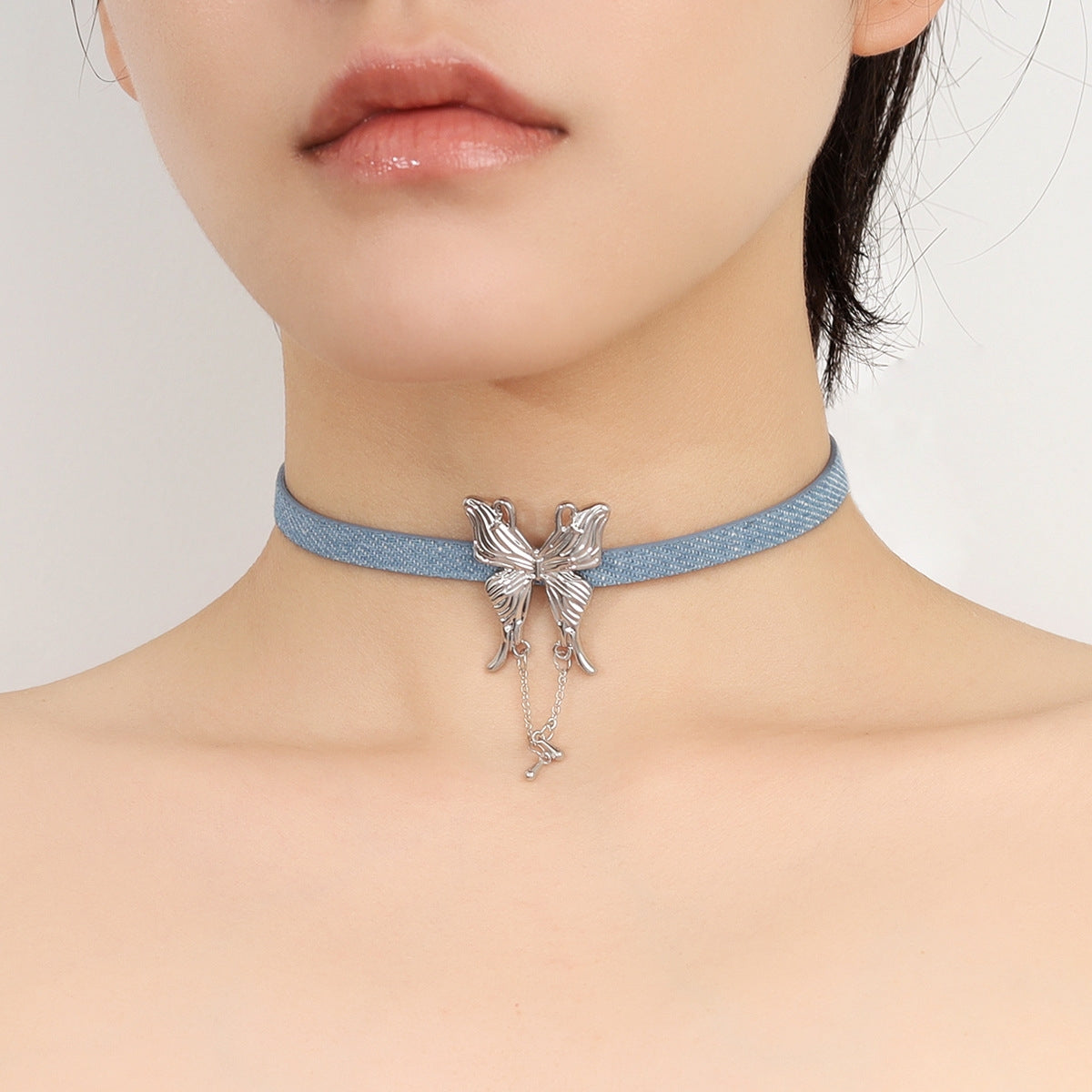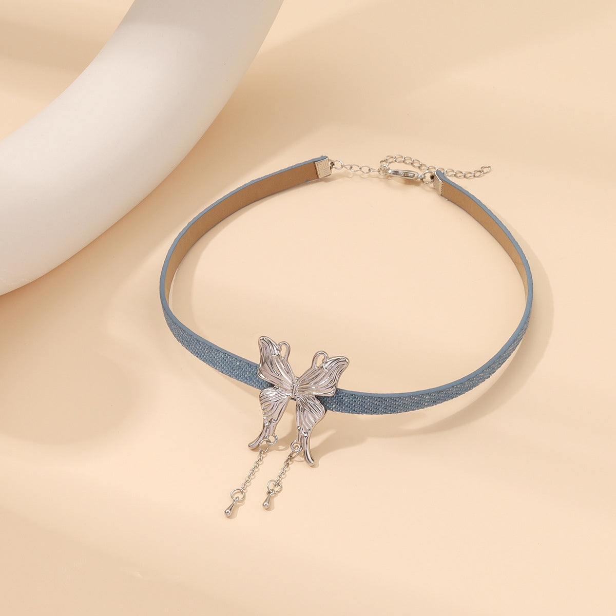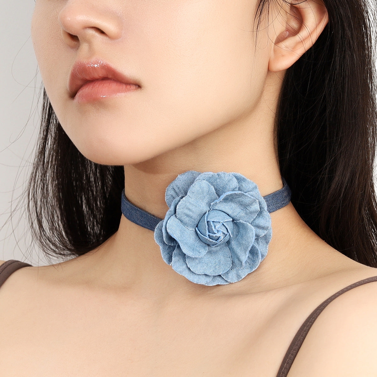 Minimalist Floral Denim Alloy Choker Necklace with Tassel Design