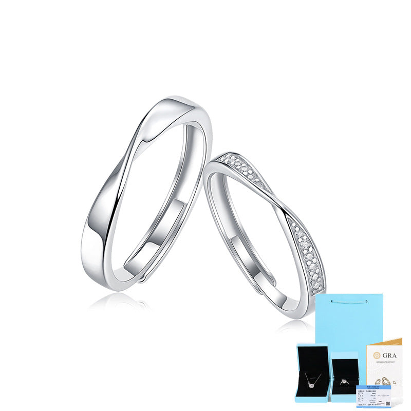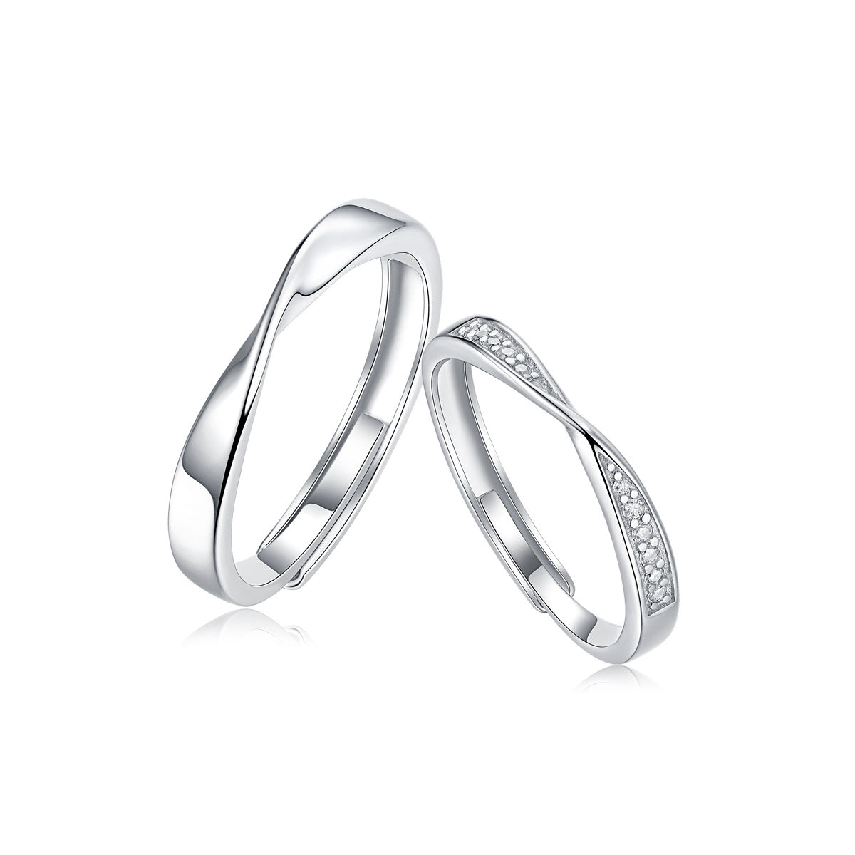 Simple Sterling Silver Moissanite Mobius Couple Rings