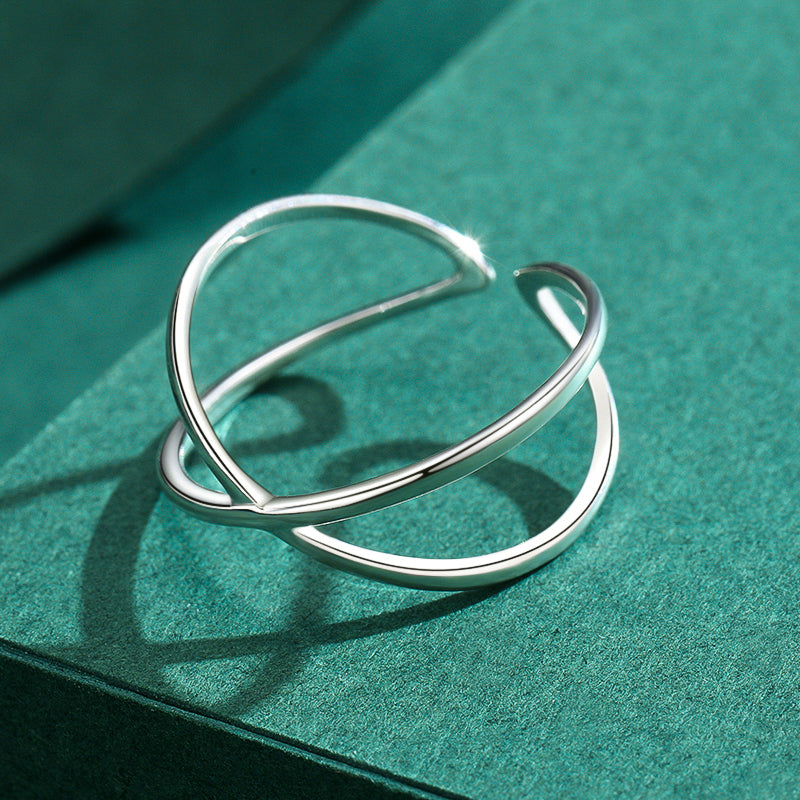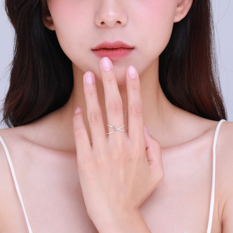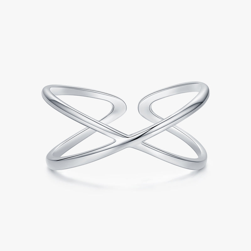 Sterling Silver Cross Open Ring with Rhodium Plating