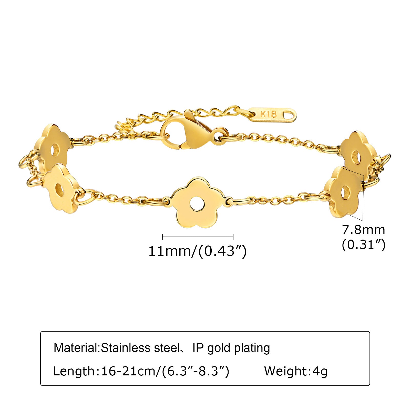 Simple Floral 18k Gold Plated Stainless Steel Bracelet