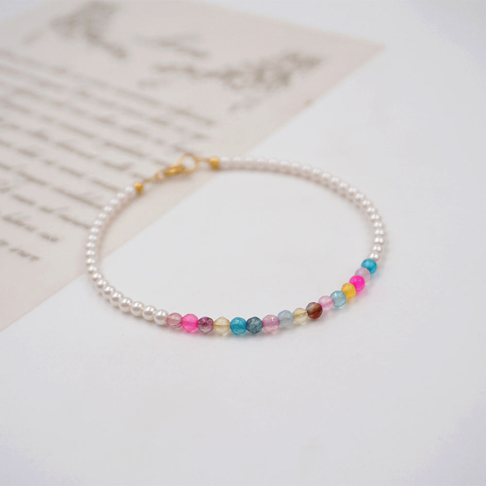 Simple Geometric Crystal Pearl Titanium Steel Bracelet - Minimalist Design Gift