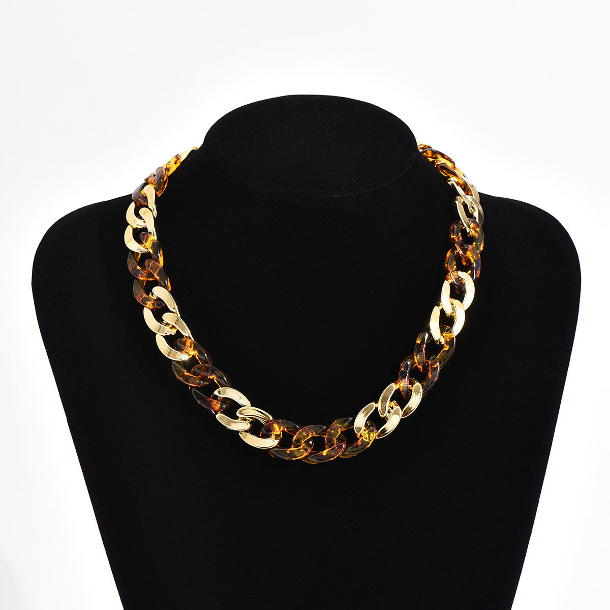 Simple Geometric Acrylic Necklace and Color Block Earrings Set