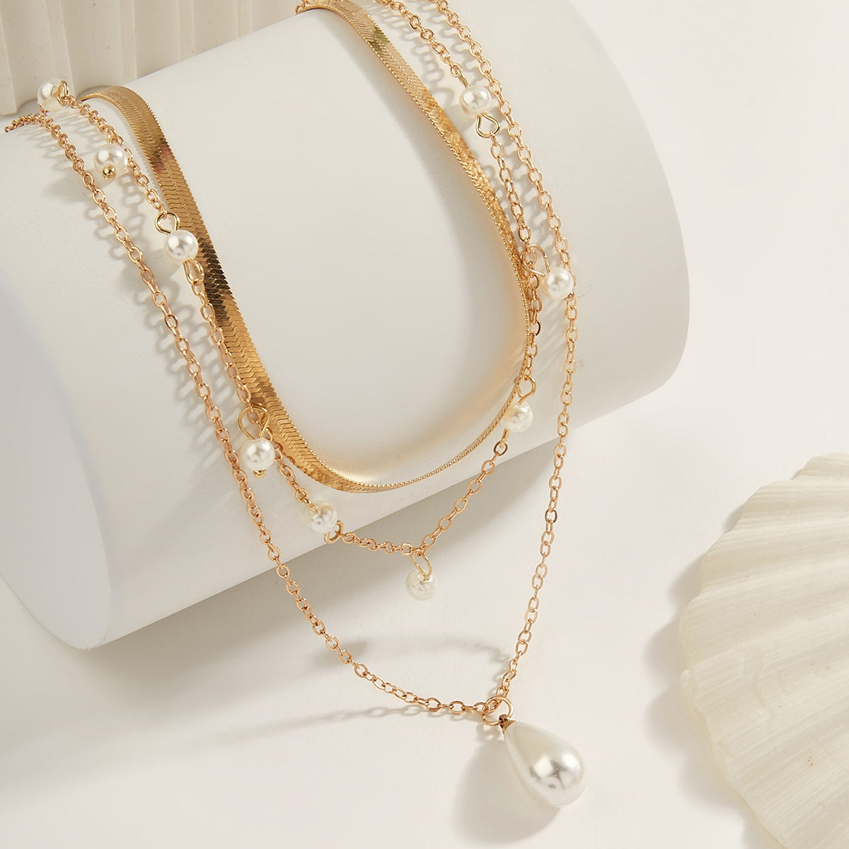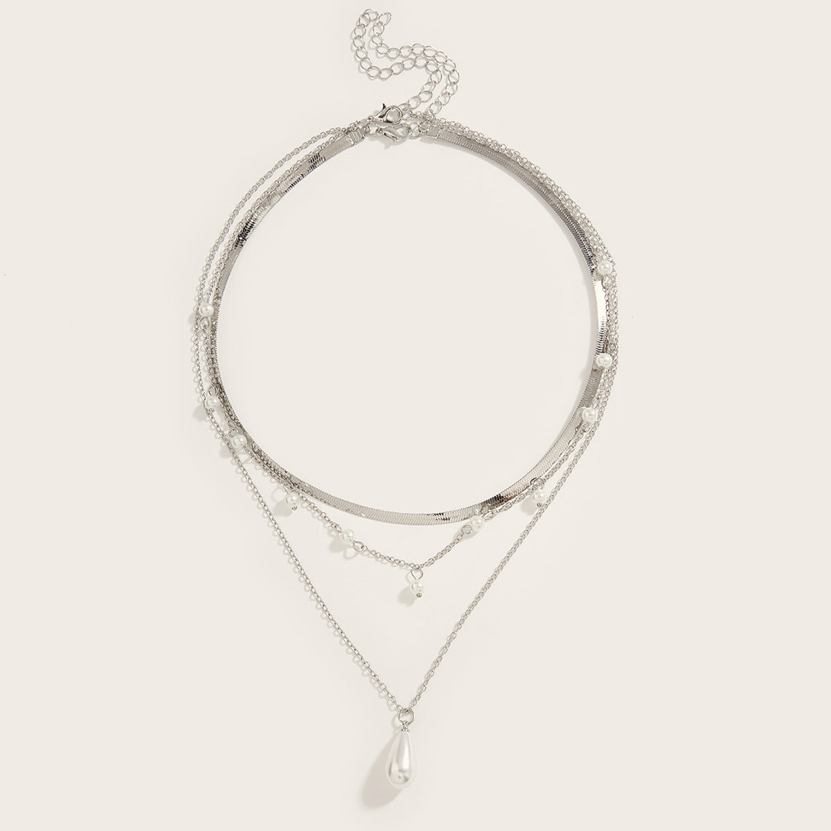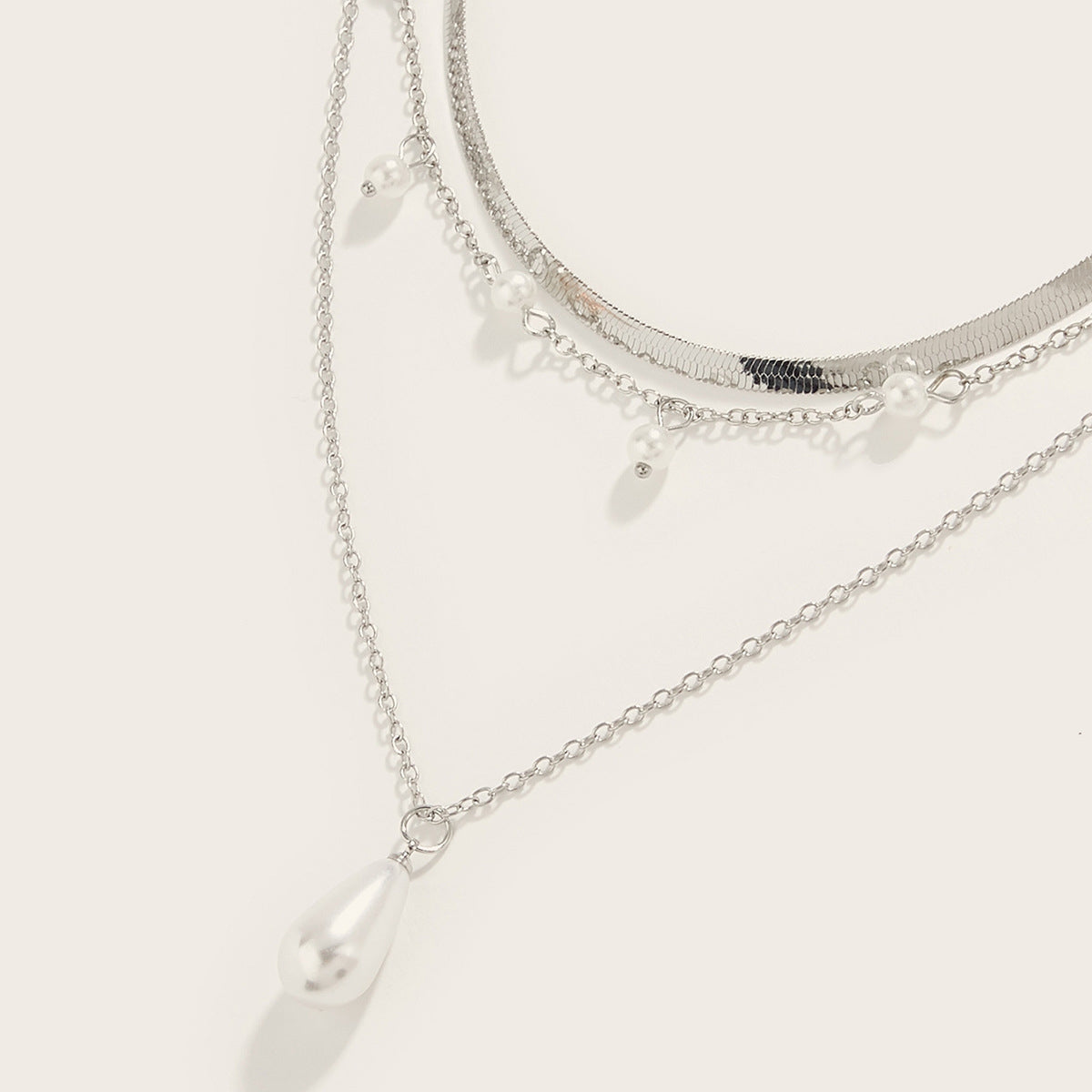 Simple Geometric Pearl Multi-Layer Necklace for Women