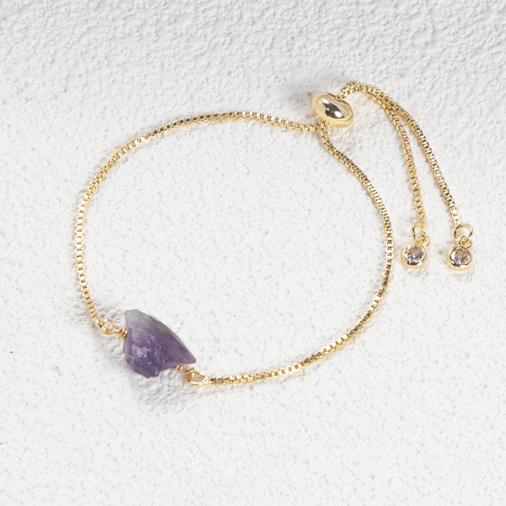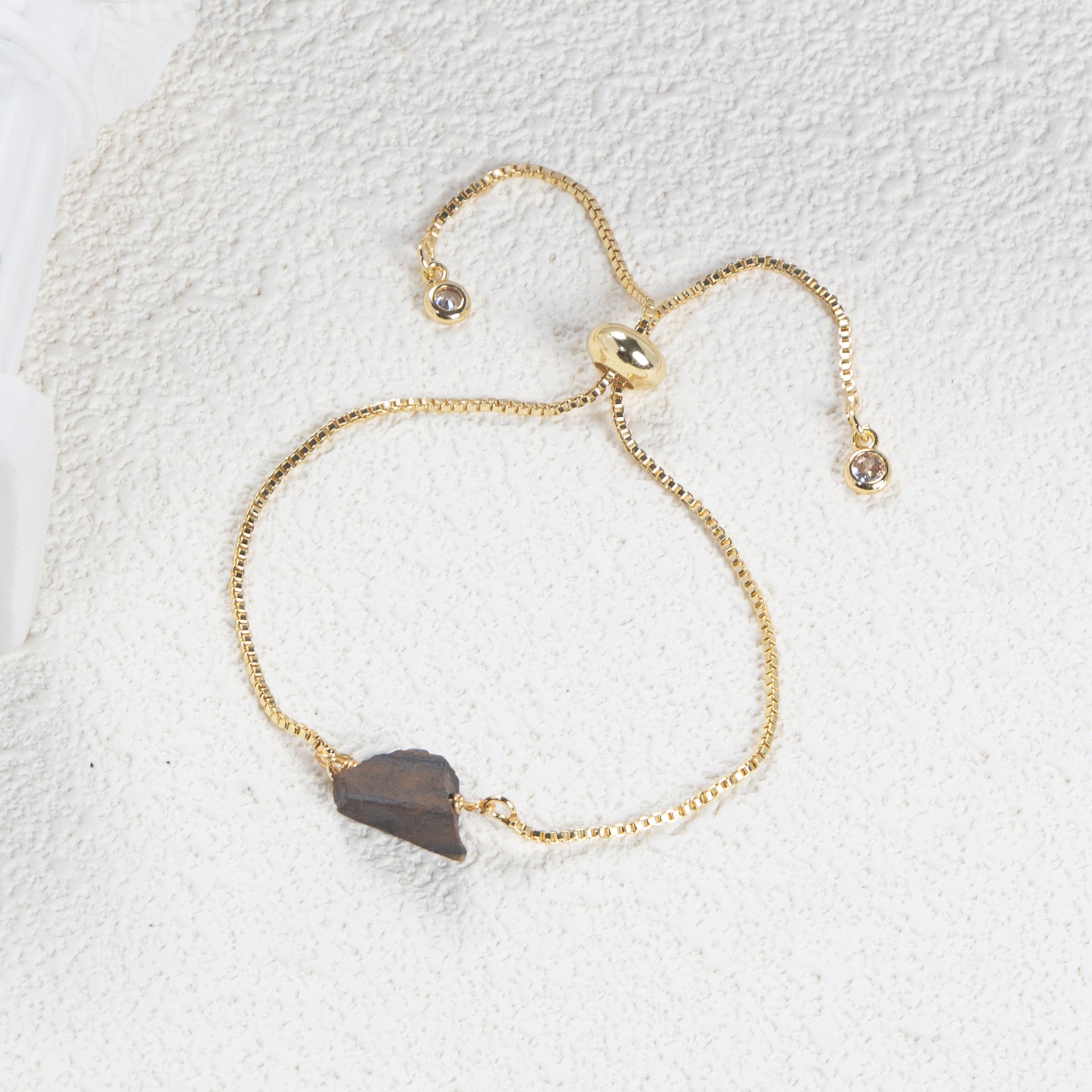 Simple Geometric Natural Stone Crystal Copper Bracelet with 14k Gold Plated Box Chain