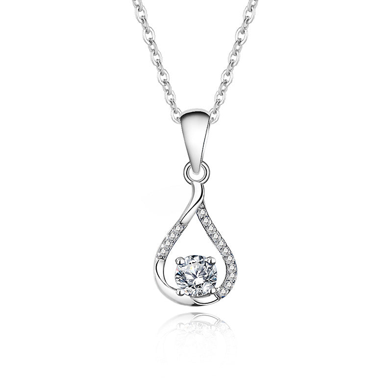 Simple Geometric Sterling Silver Moissanite Teardrop Pendant Necklace