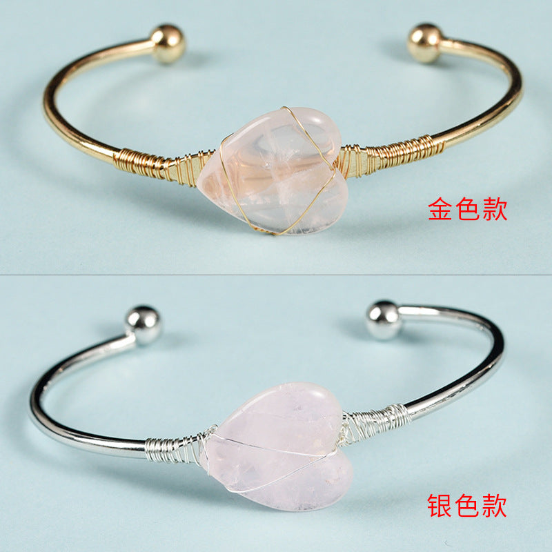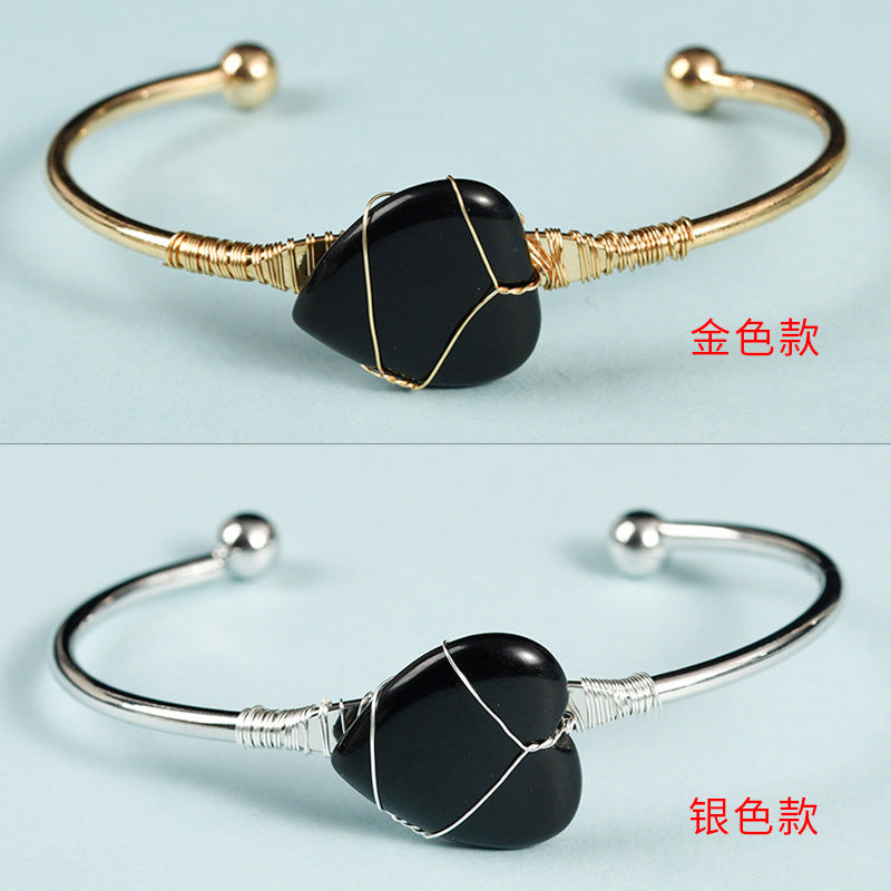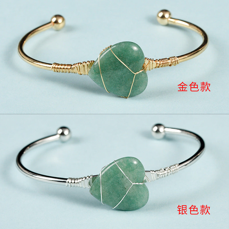 Simple Heart Crystal Bangle with Gemstone Beads Bracelet