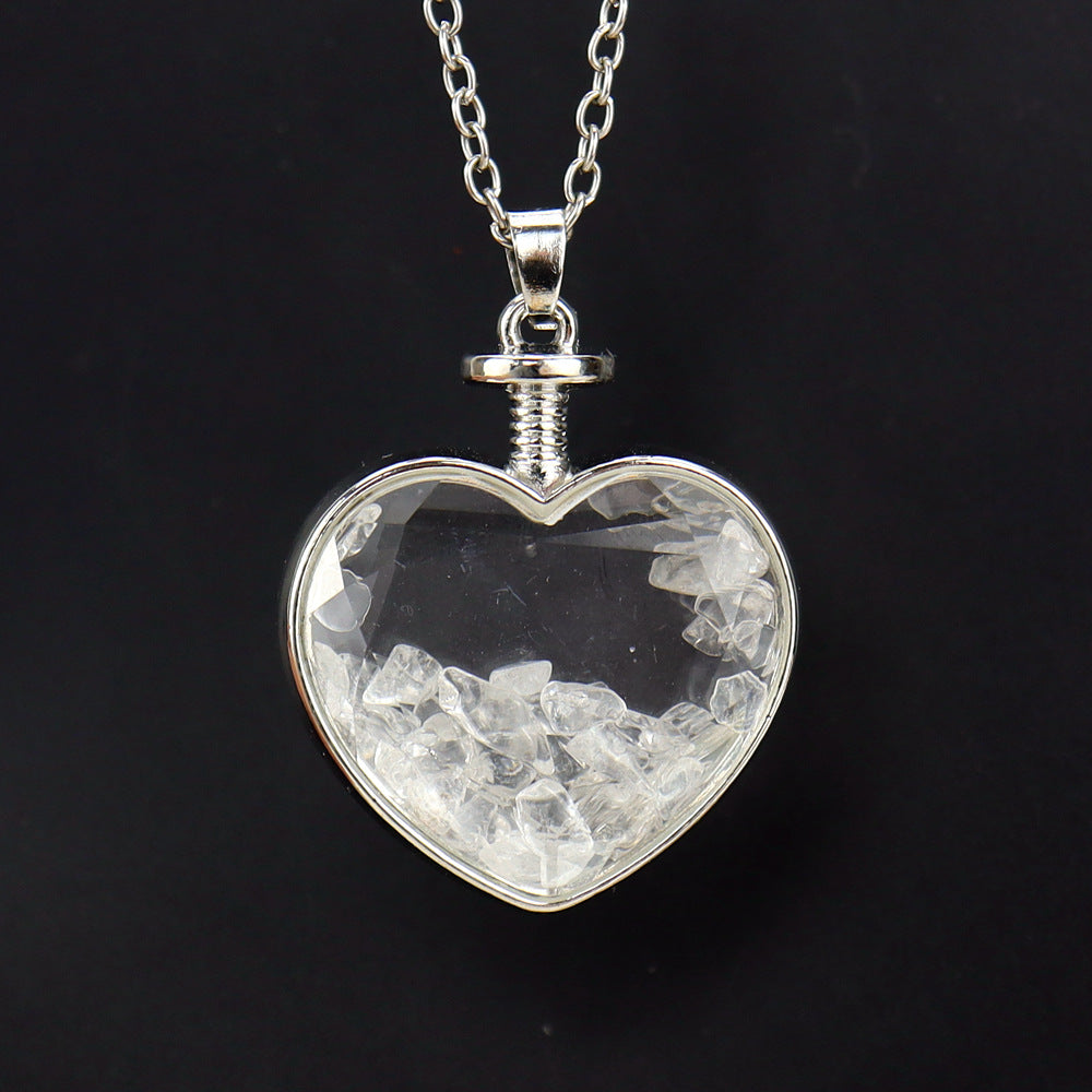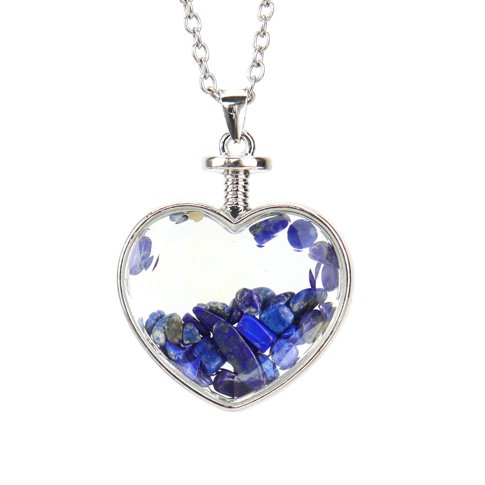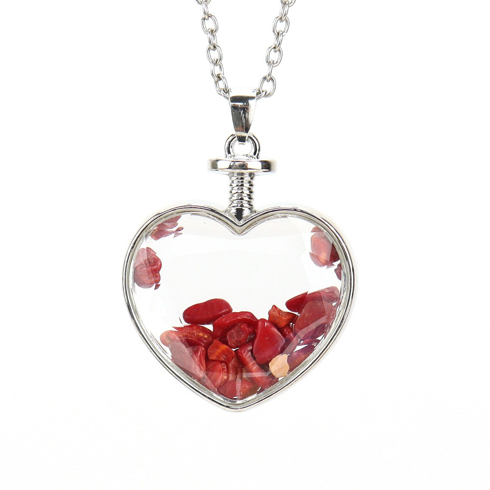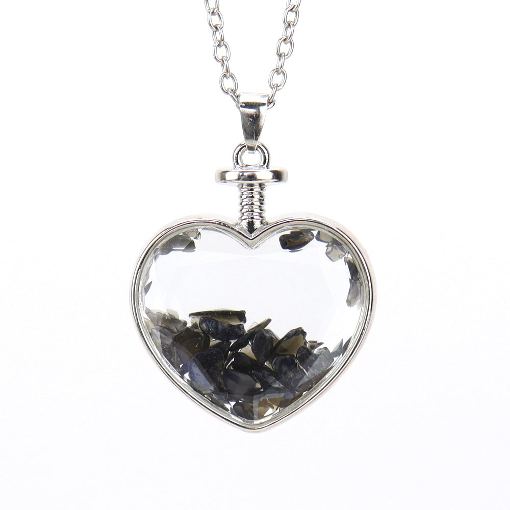 Simple Heart Shape Natural Stone Pendant Necklace with Polished Tiger Eye and Colorful Gemstones