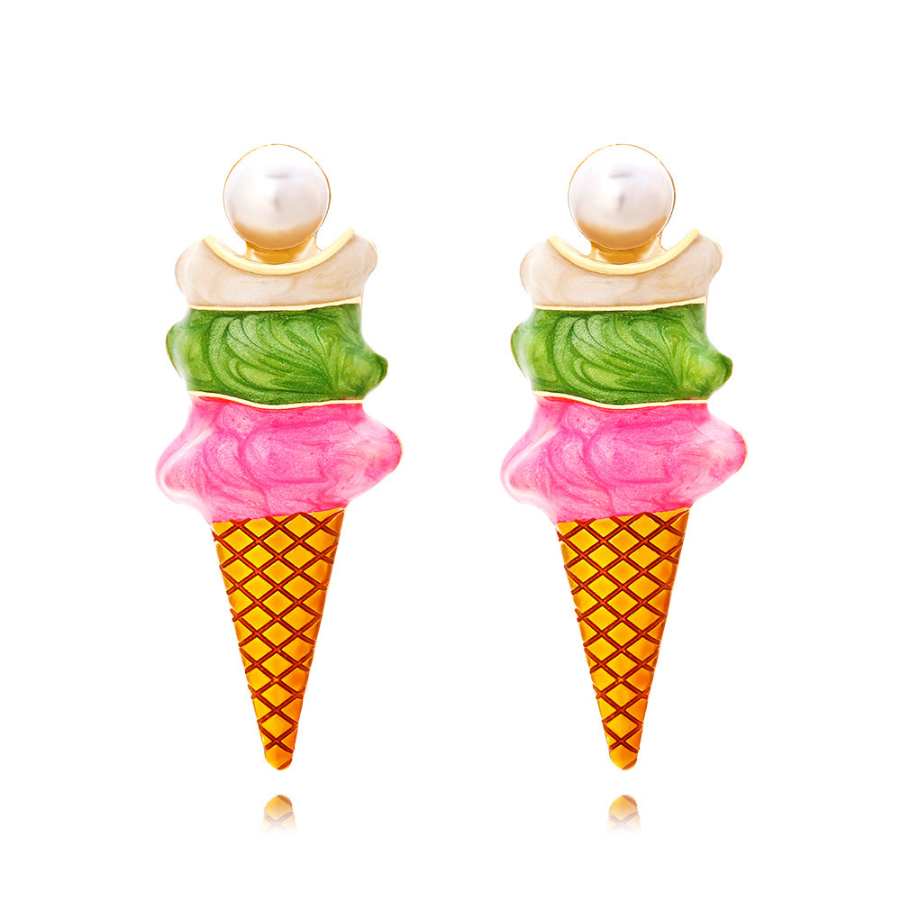 Simple Style Enamel Ice Cream Cone Earrings with Artificial Pearls for Women