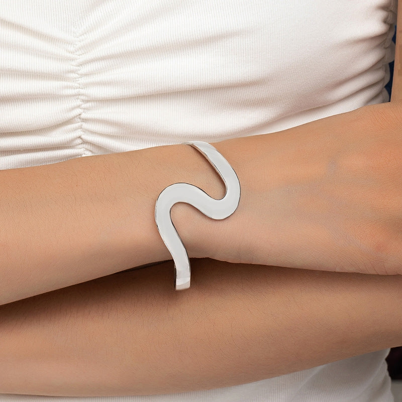Simple Minimalist Irregular Alloy Plated Women's Bangle Bracelet