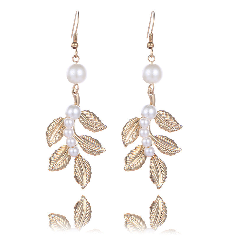 Simple Leaf Metal Pearl Bridal Hair Accessories Set