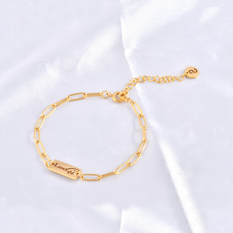 Simple Style Lucky Letter Titanium Steel Chain Bracelet 18K Gold Plated