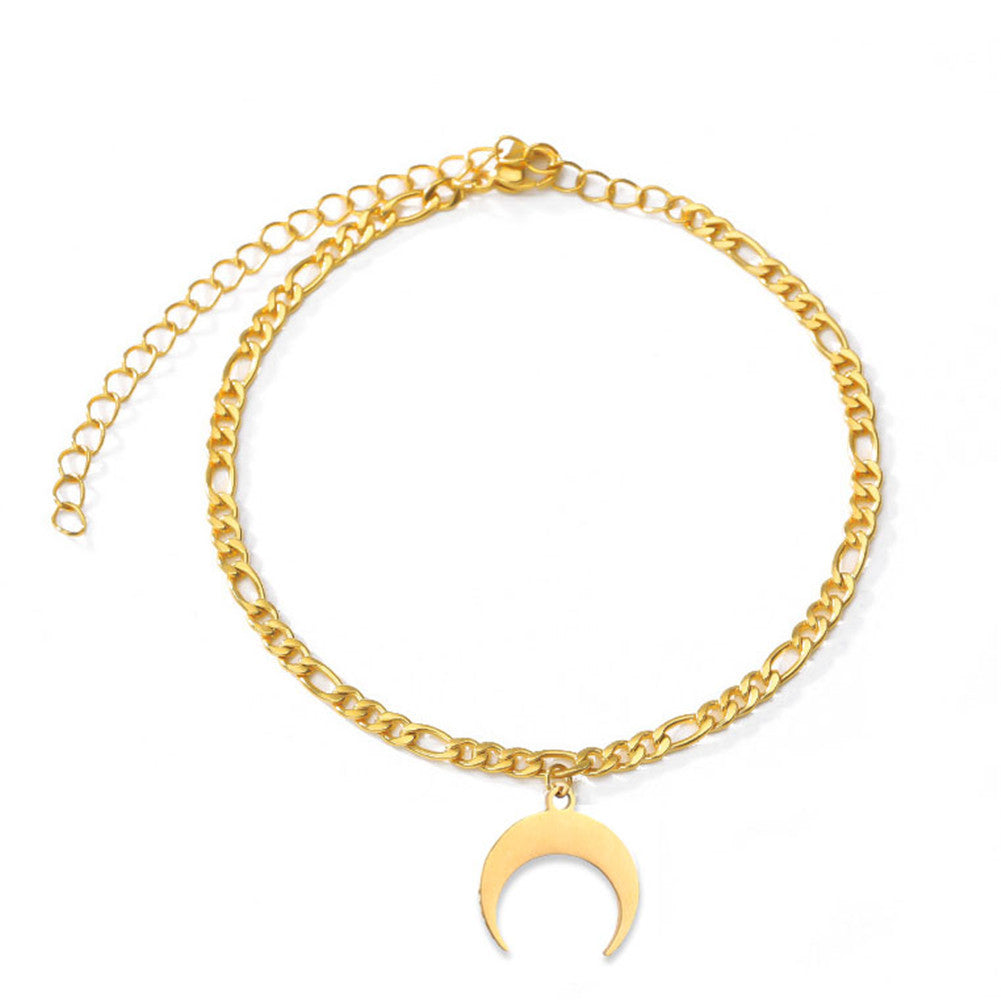 Simple Style Punk Moon Stainless Steel Figaro Chain Women's Anklet