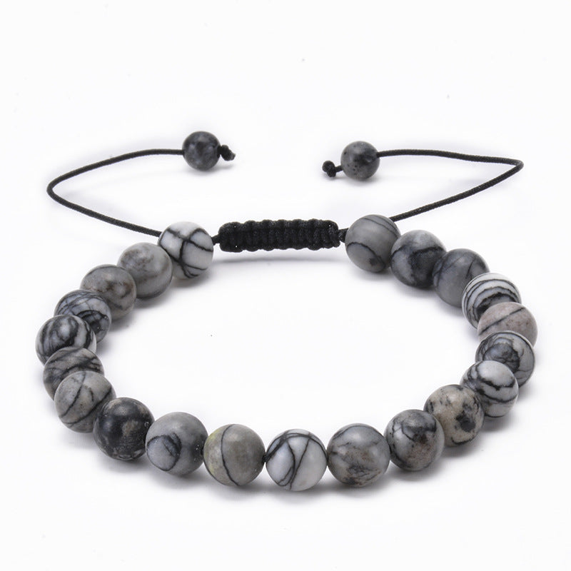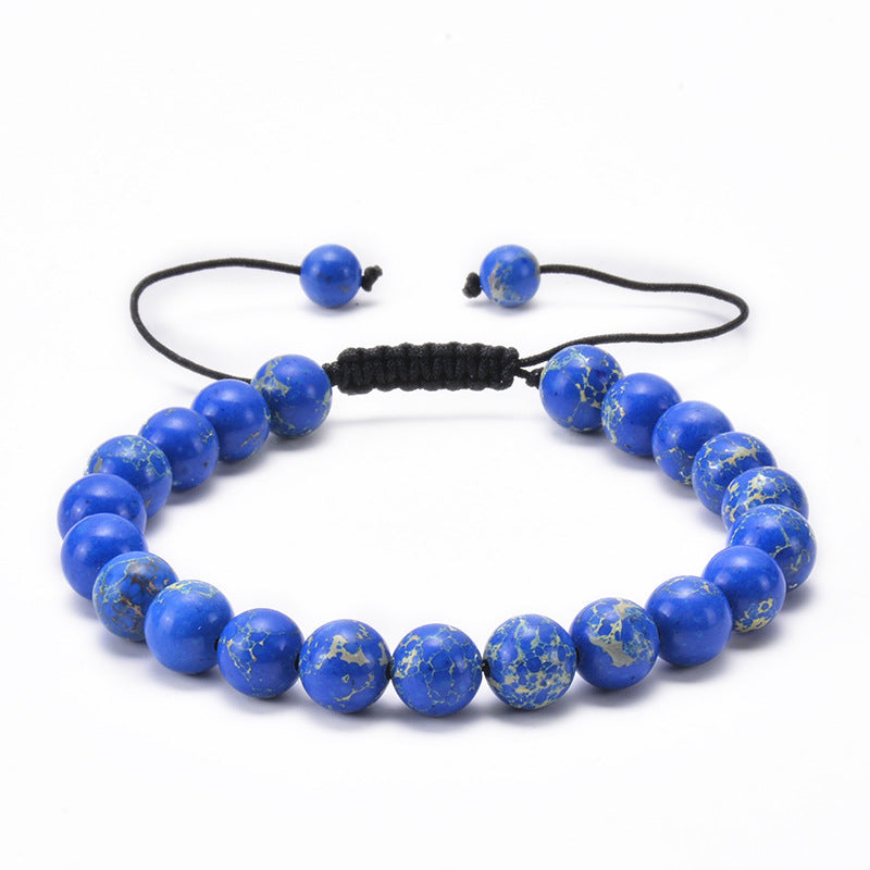 Simple Style Multicolor Agate and Lapis Lazuli Adjustable Beaded Bracelet