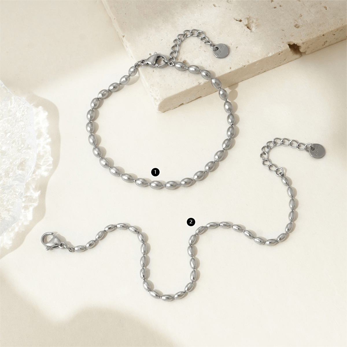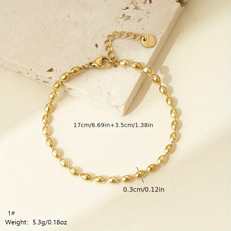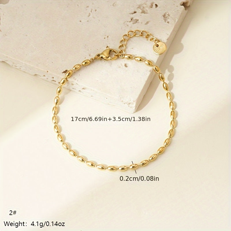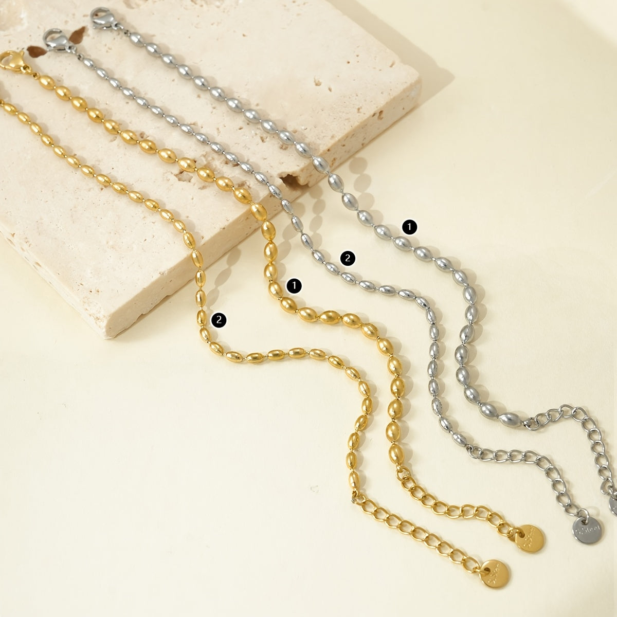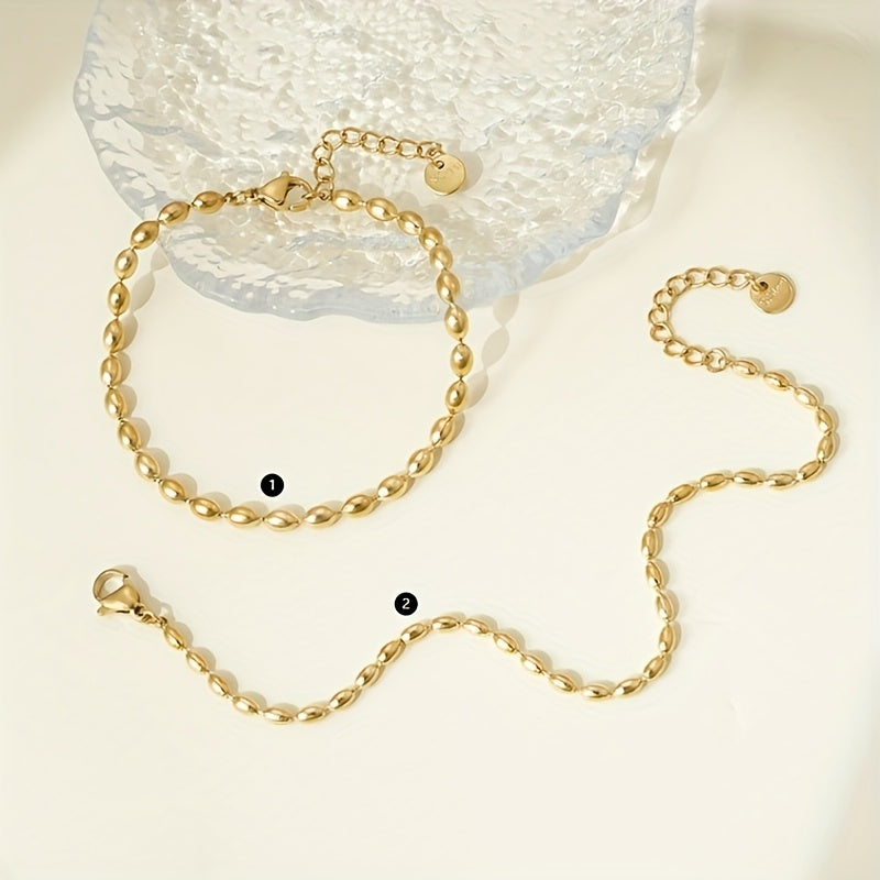 Simple Style Oval 14K Gold Plated Stainless Steel Bead Necklace and Bracelet Set