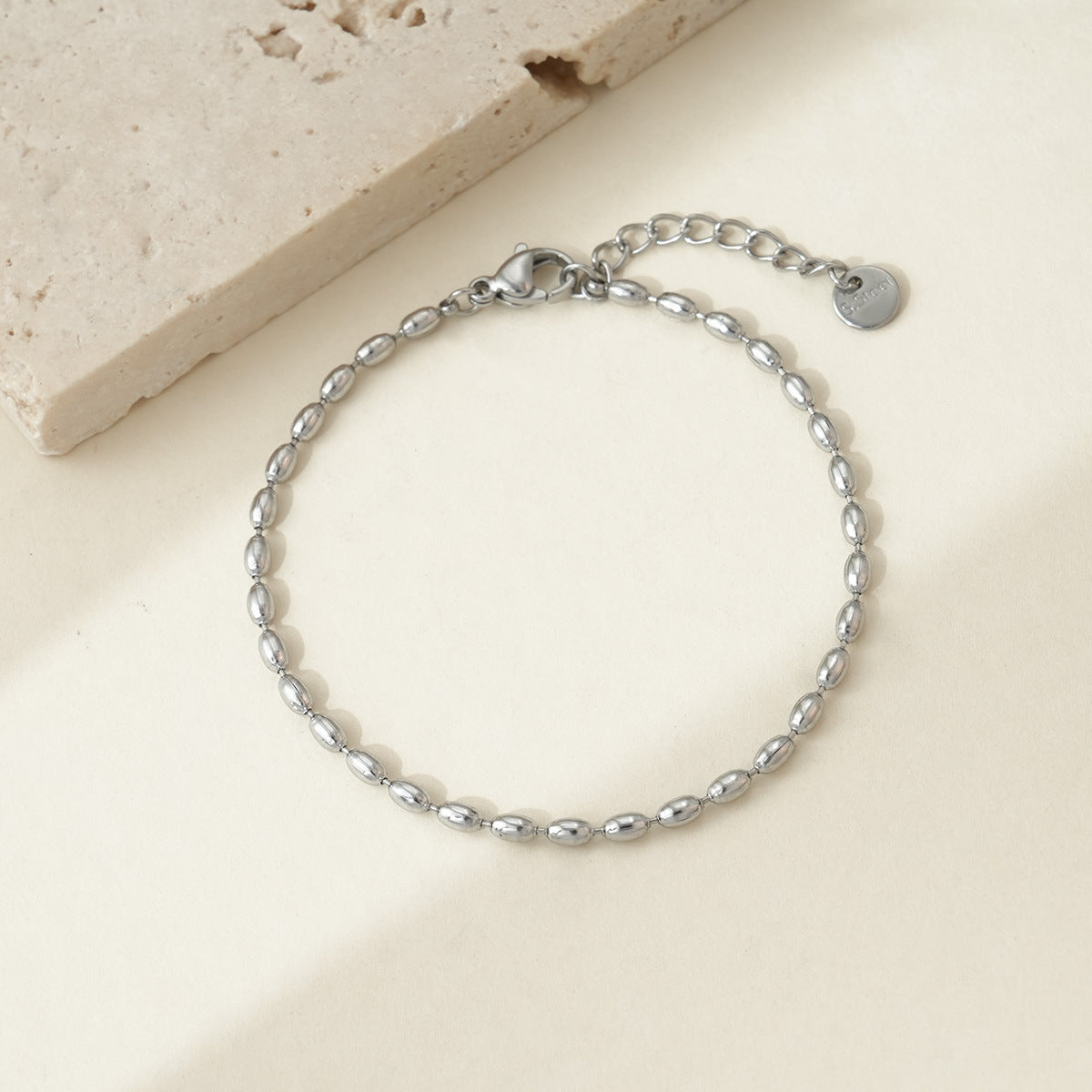 Simple Style Oval 14K Gold Plated Stainless Steel Bead Necklace and Bracelet Set