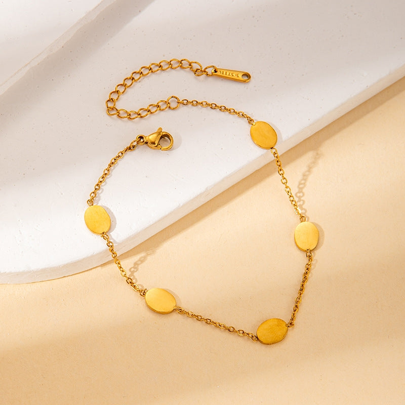 Simple Oval Flower Stainless Steel Bracelet with Geometric Design