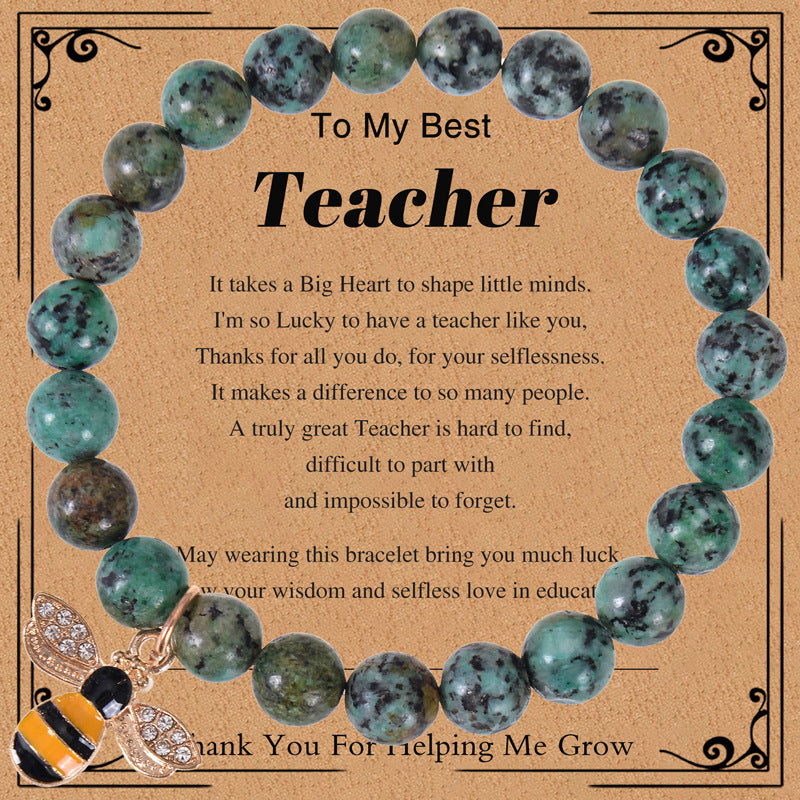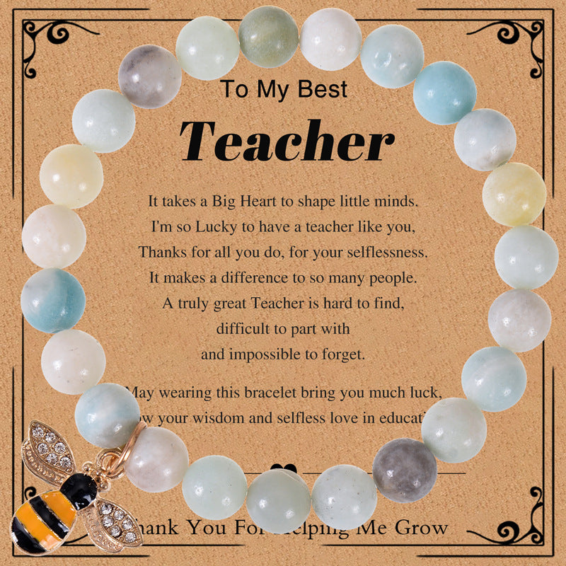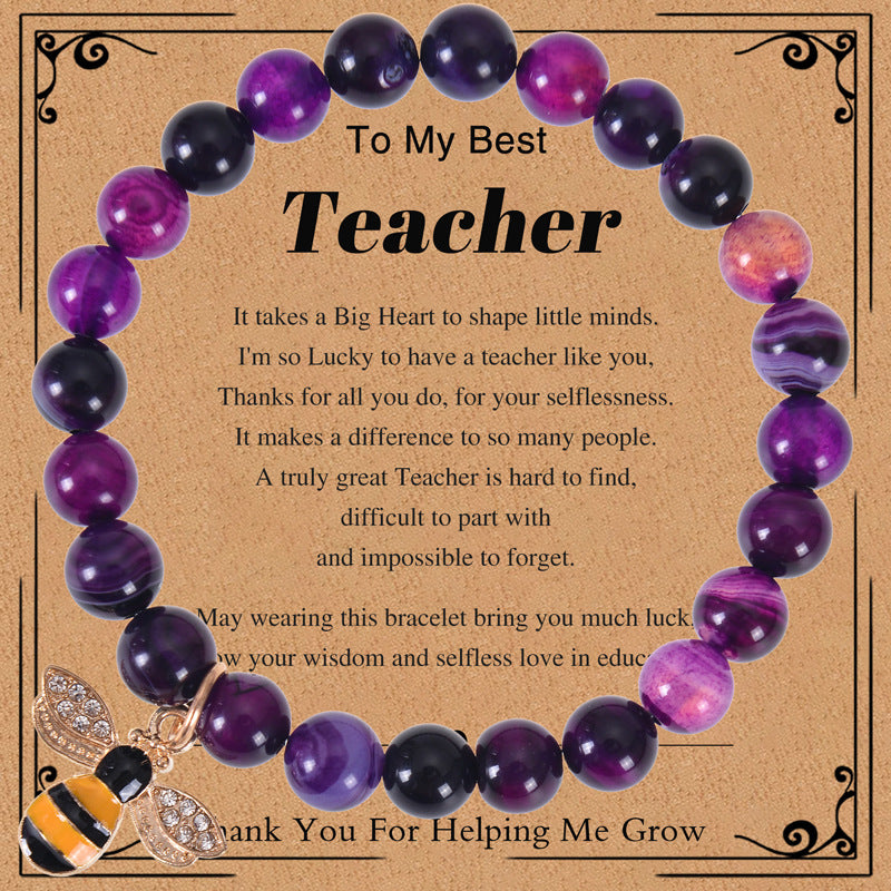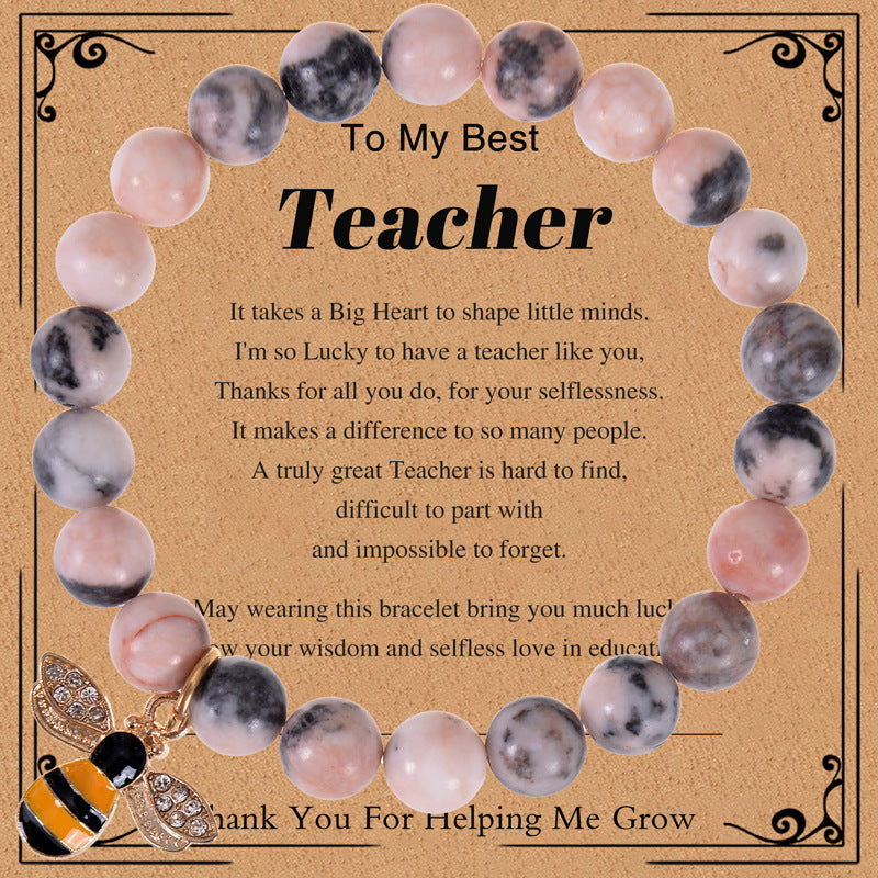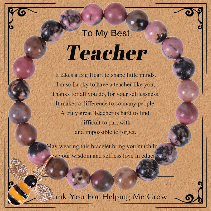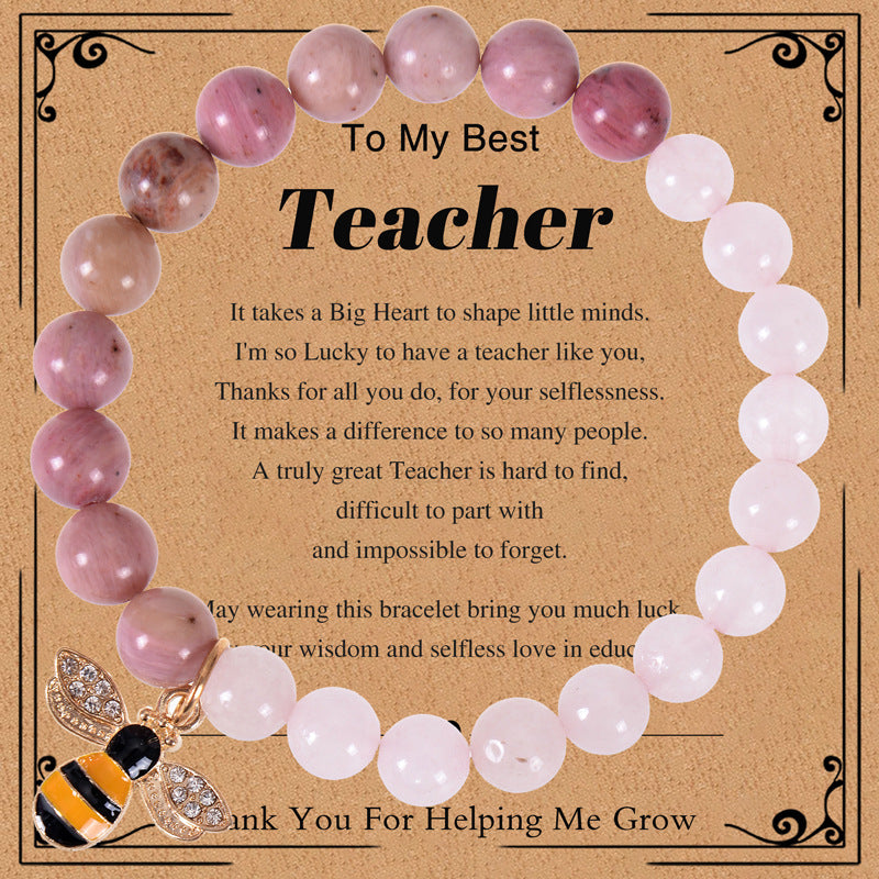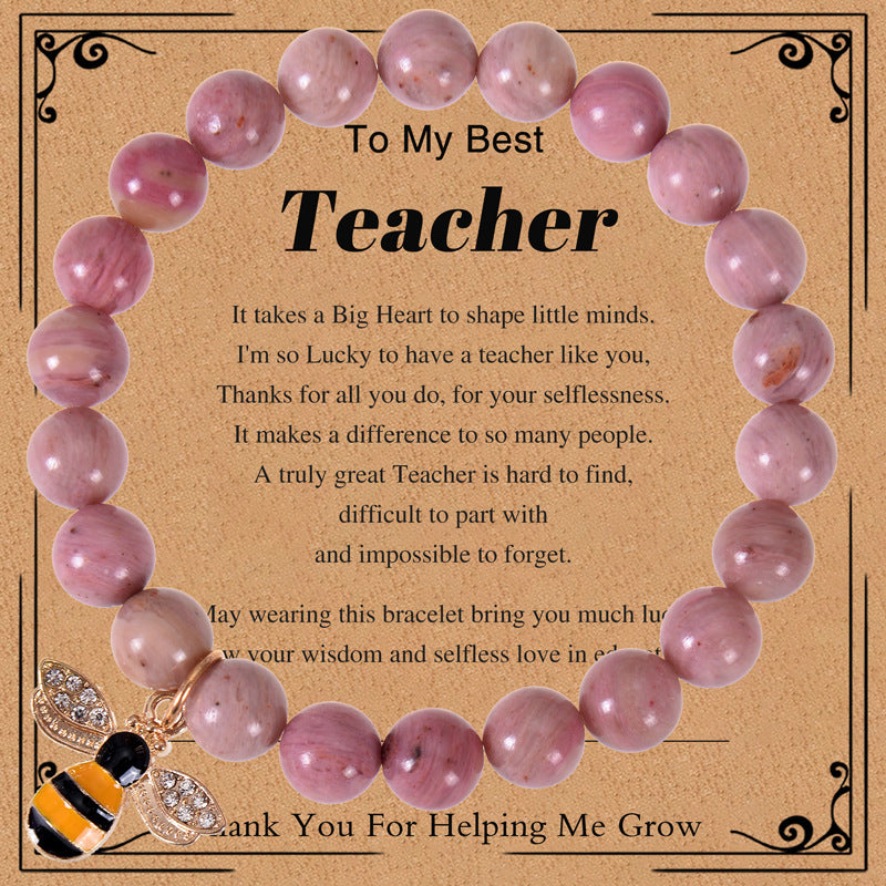 Simple Style Natural Agate and Pink Crystal Beaded Bracelet with Zircon Bee Pendant