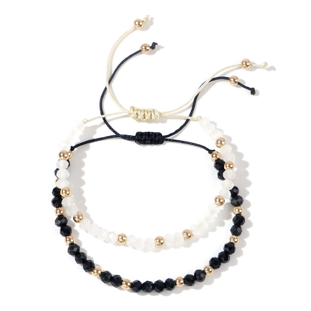 Simple Style Round Crystal Bead Drawstring Bracelet Set