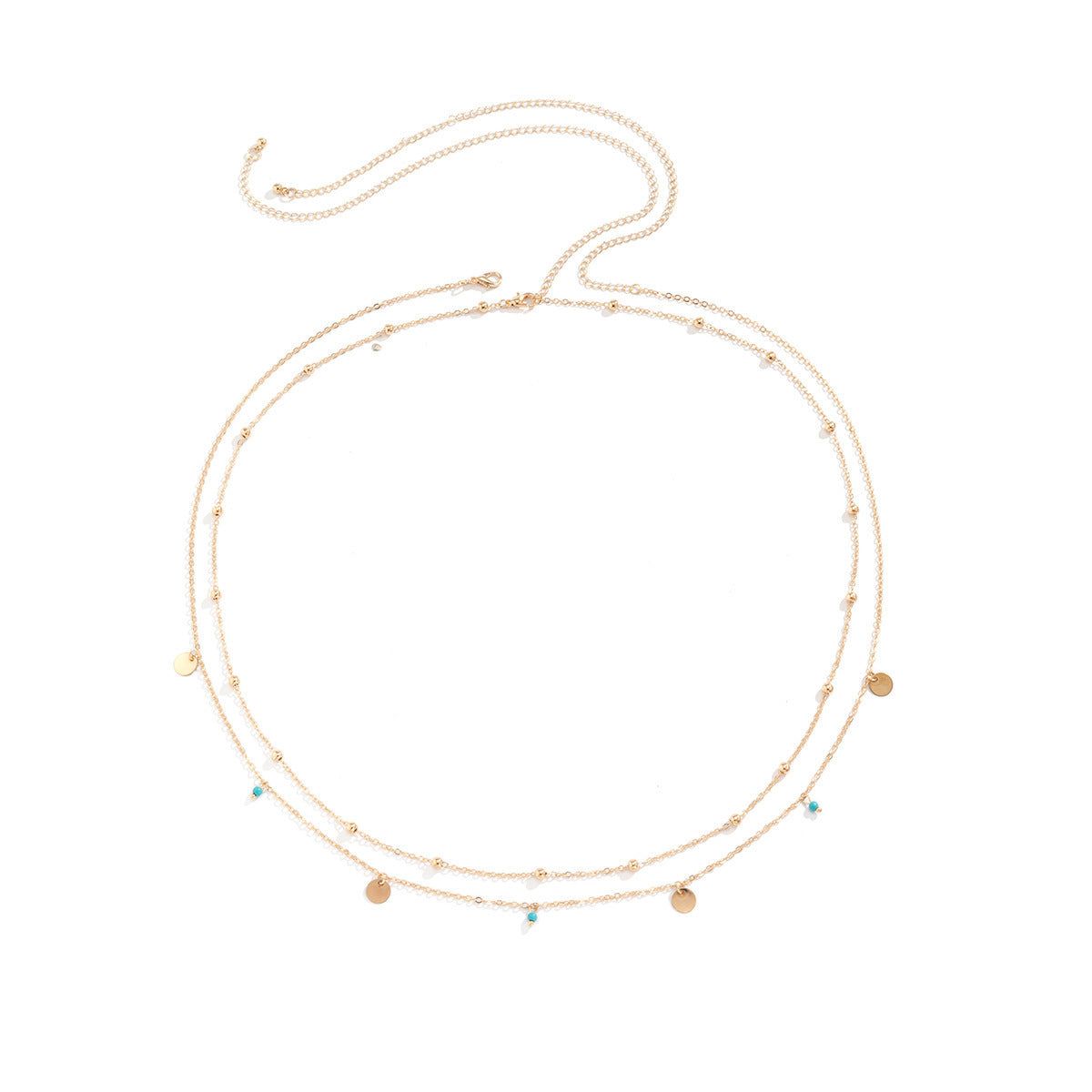 Simple Style Round Metal Beaded Layered Waist and Body Chain