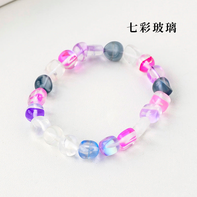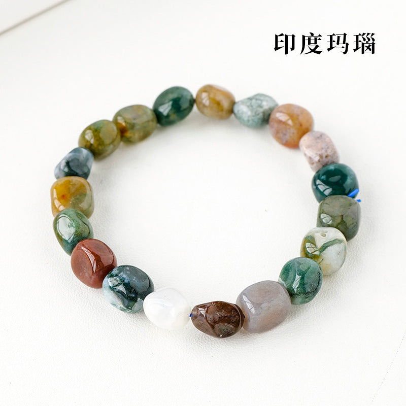 Simple Round Natural Stone Crystal Beaded Bracelet for Women