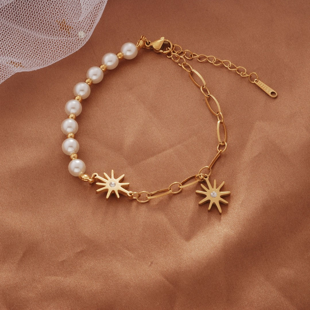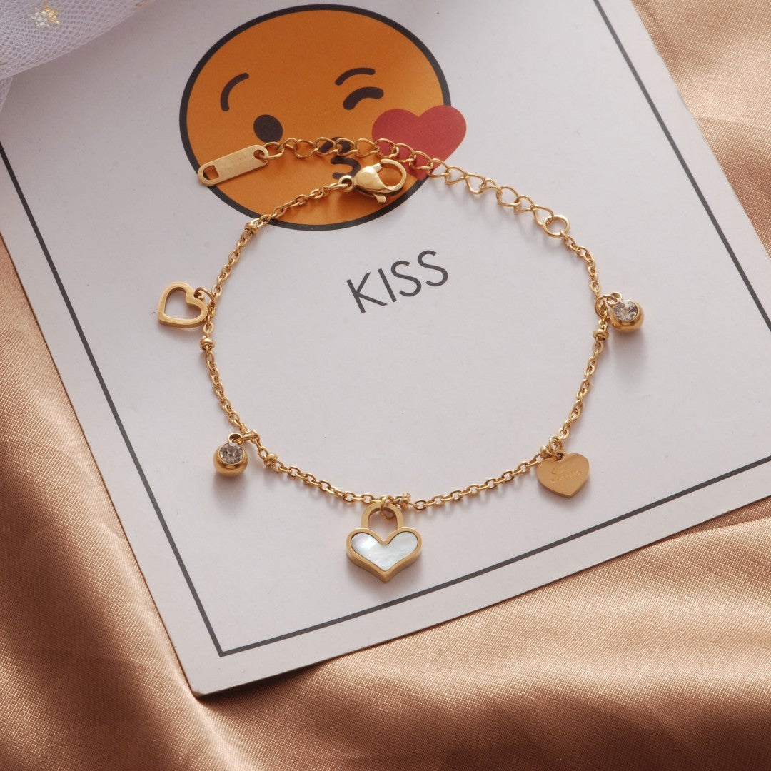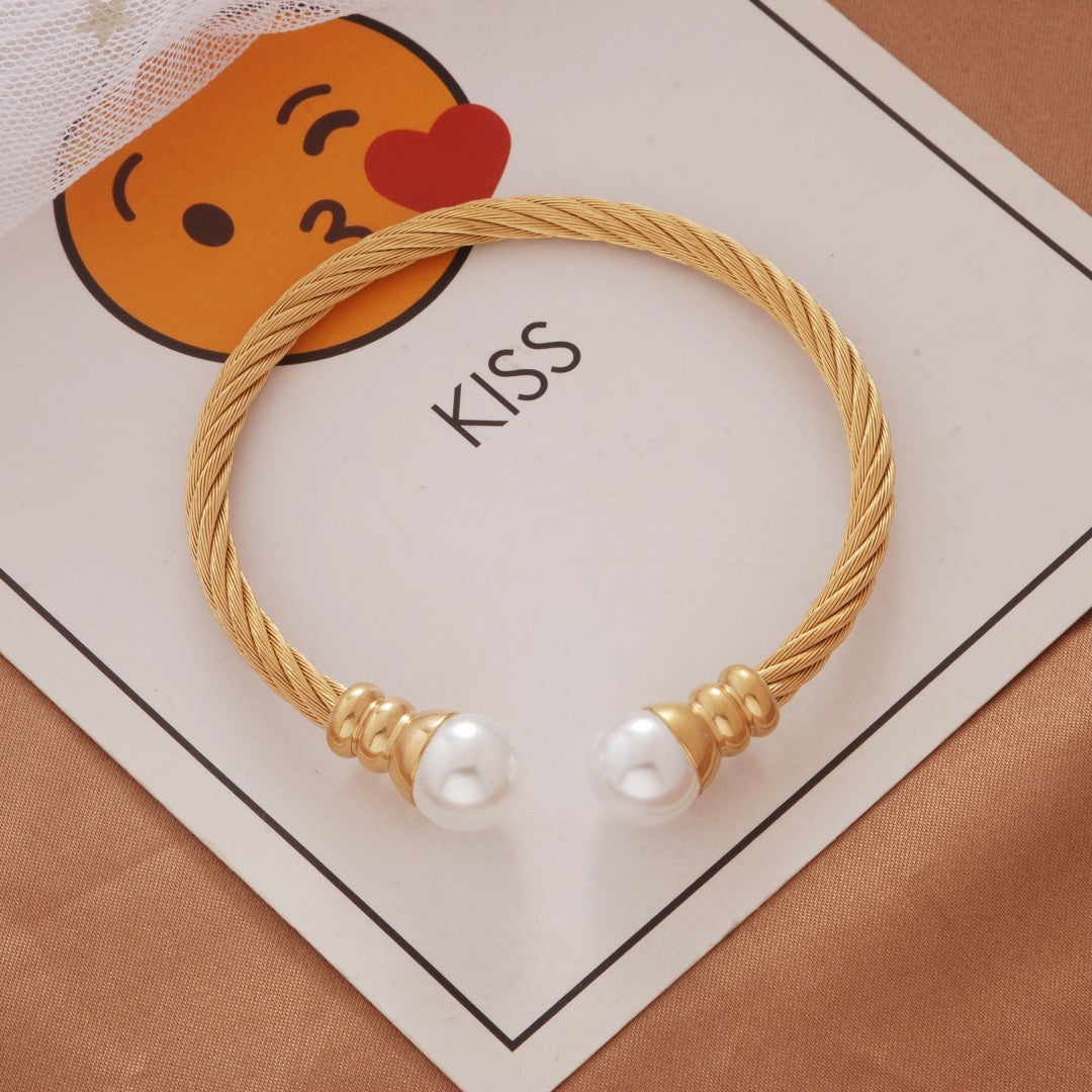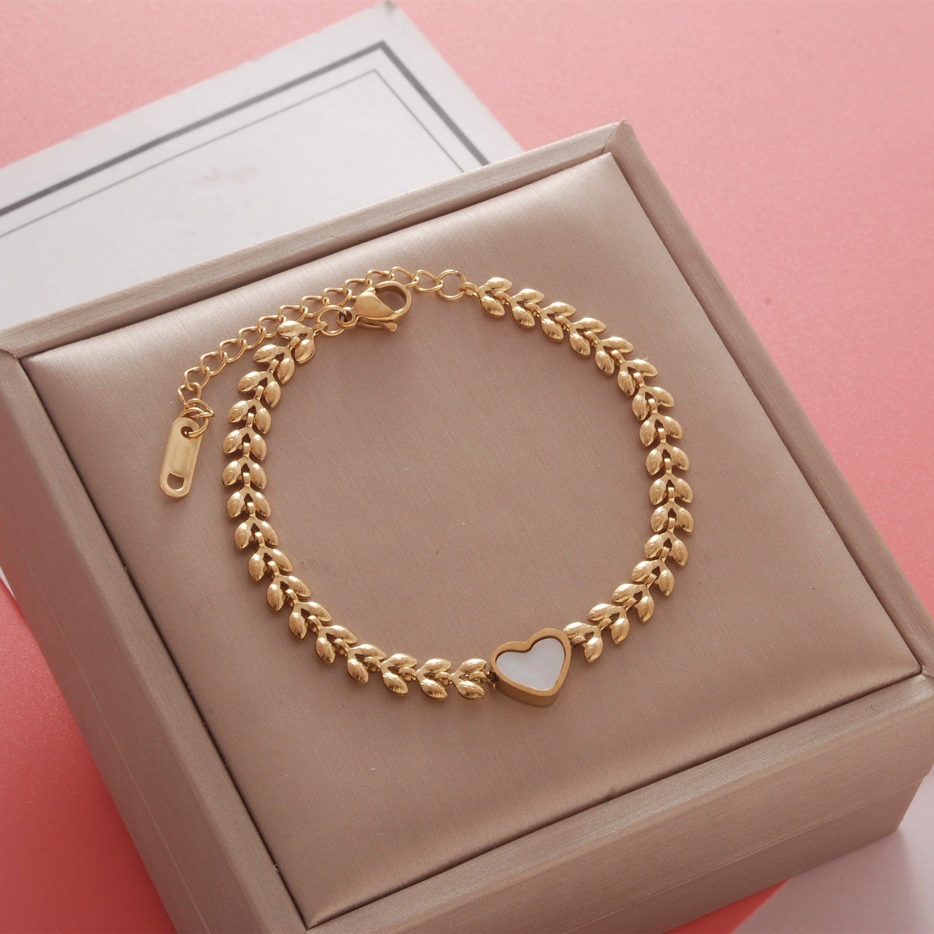 Simple Style Roman Heart Pearl Stainless Steel Bracelet
