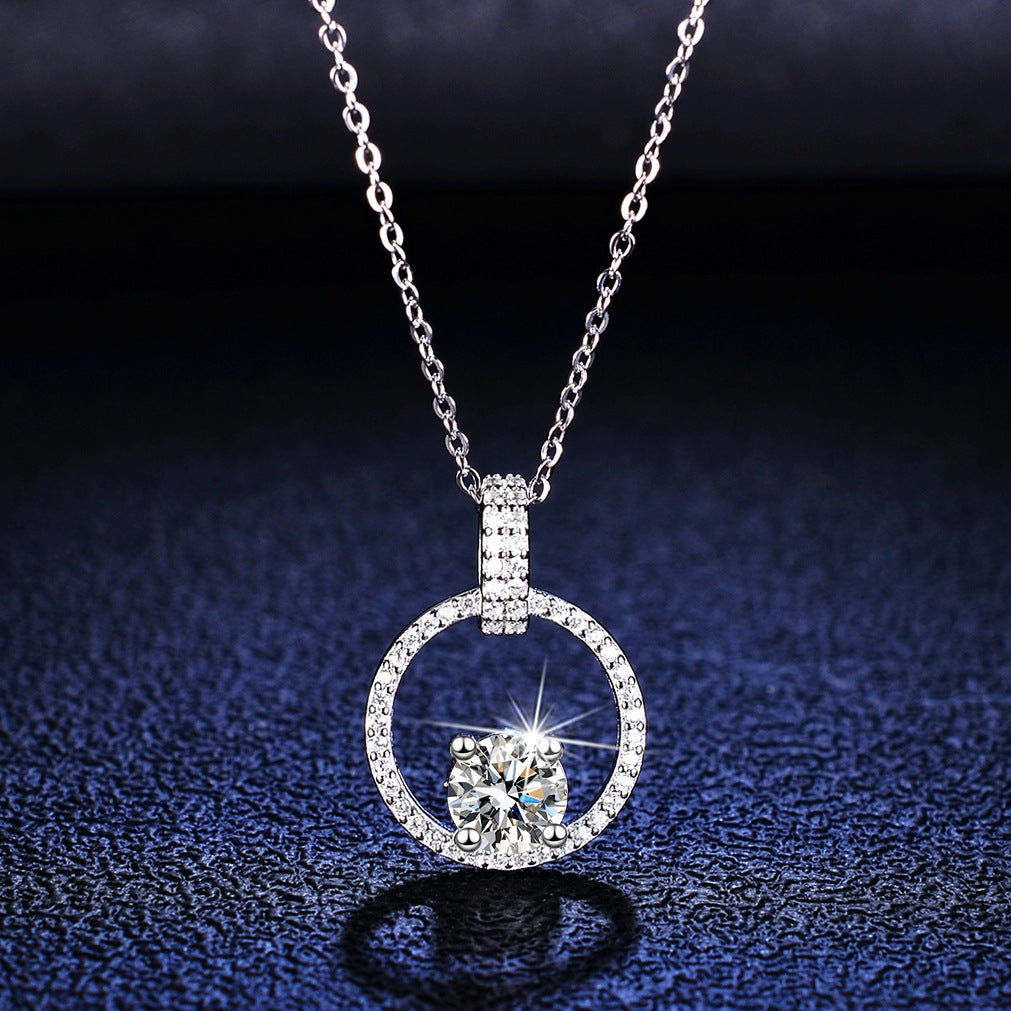 Simple Style Sterling Silver Moissanite Pendant Necklace